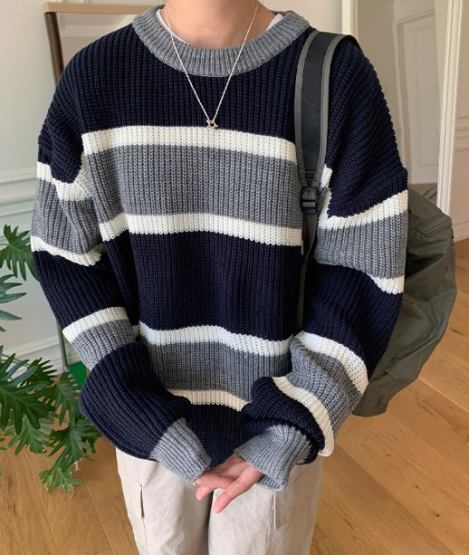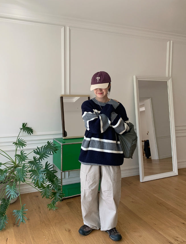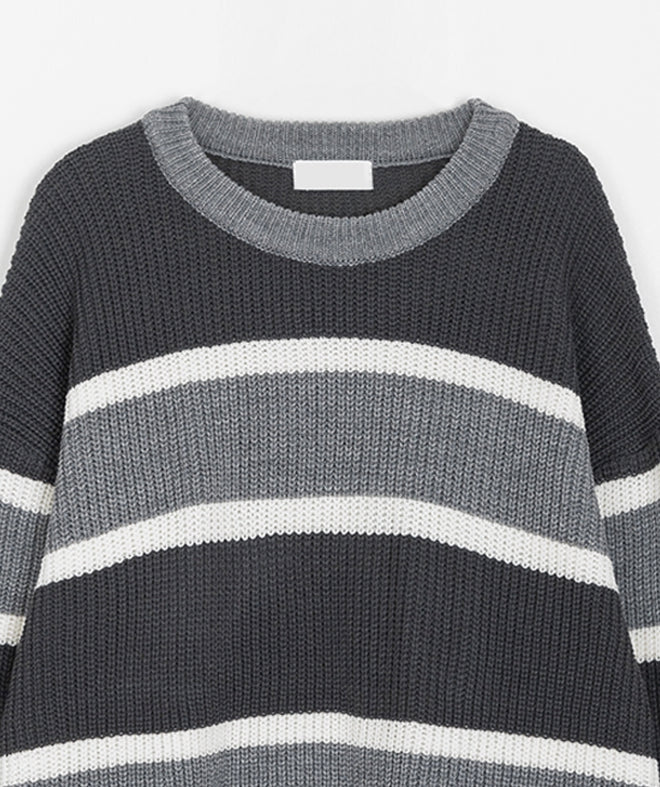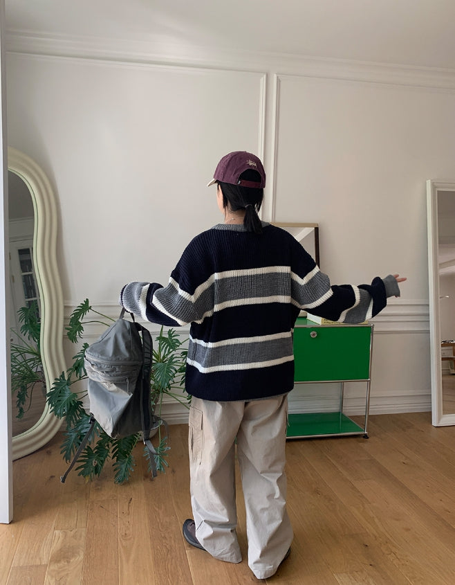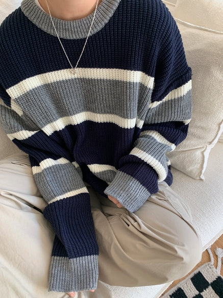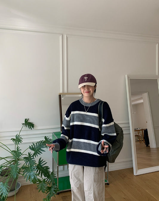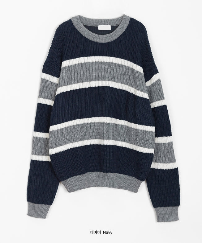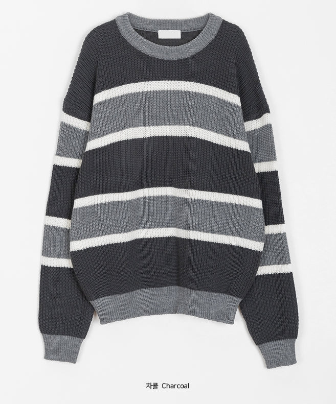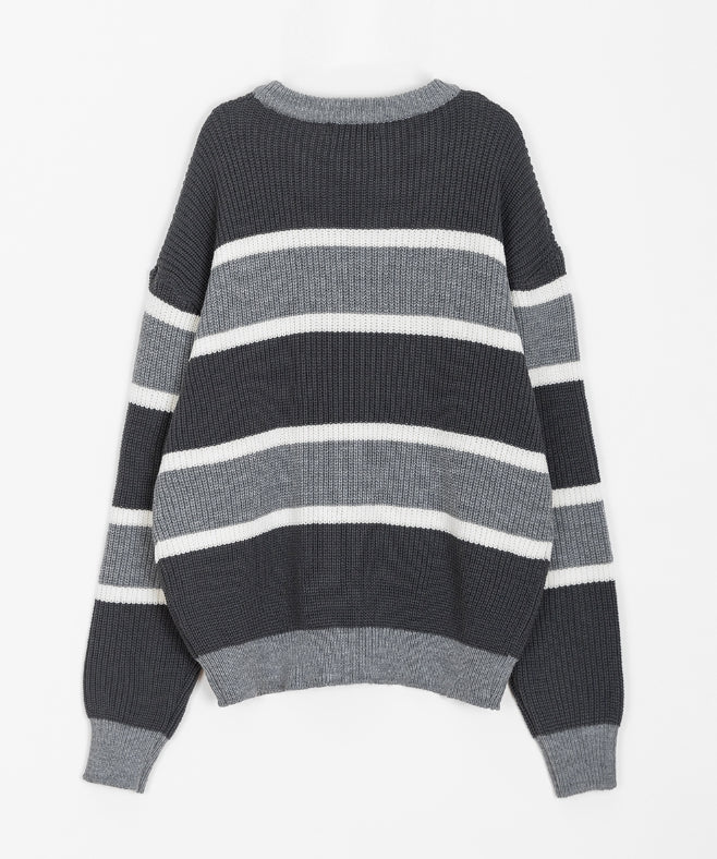 [男女兼用]ルハンストライプオーバーラウンドニット
