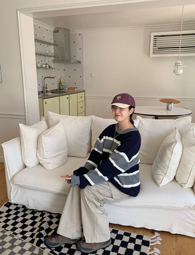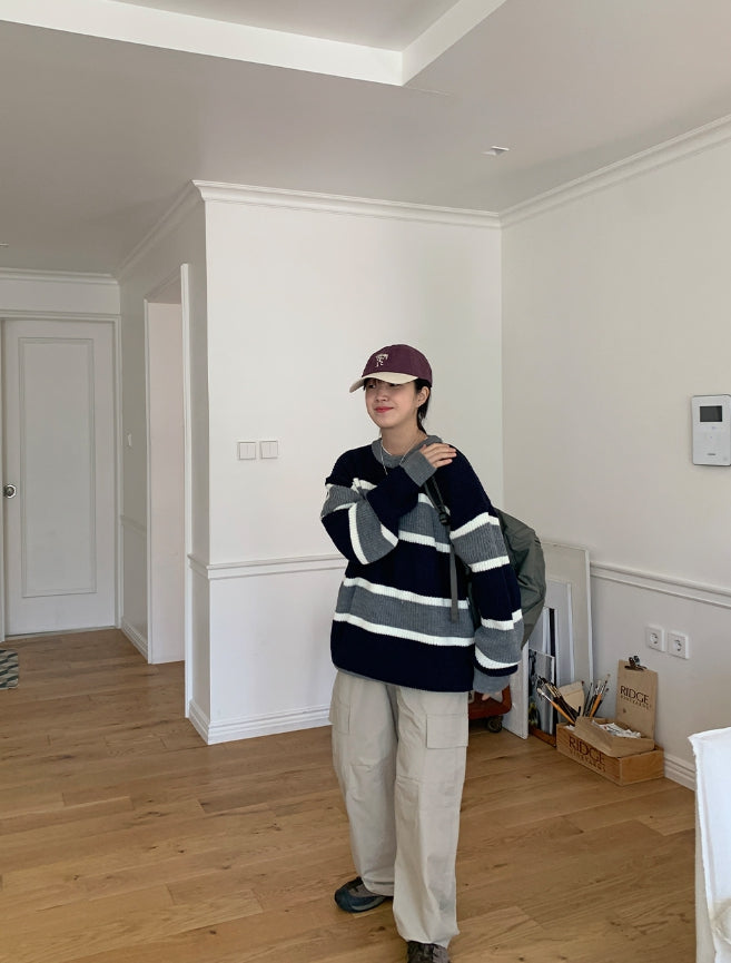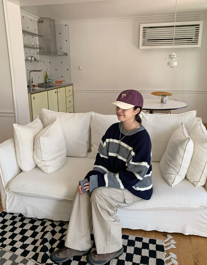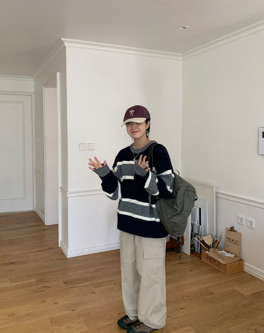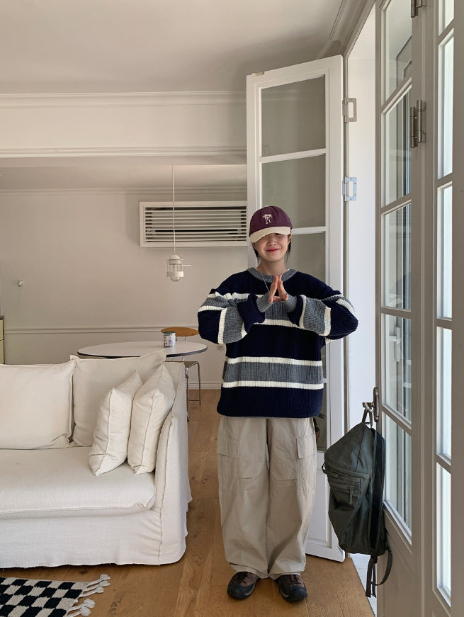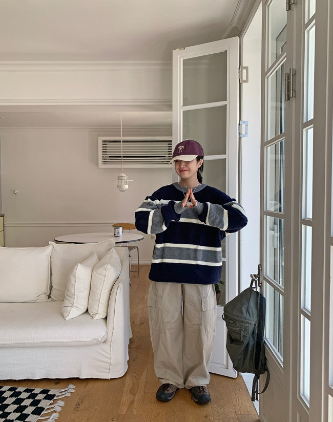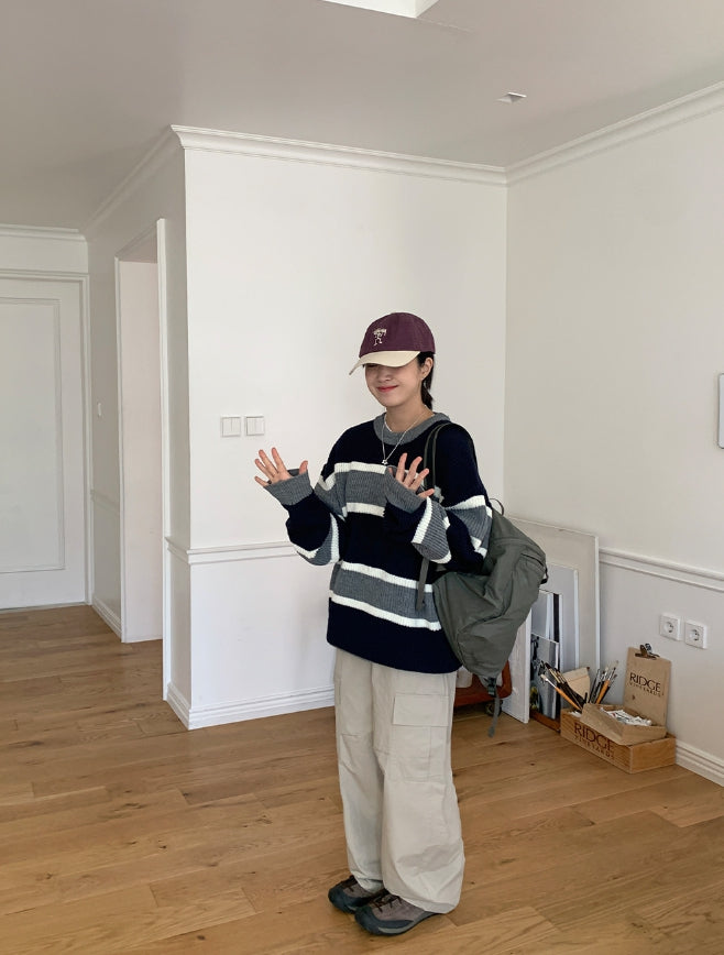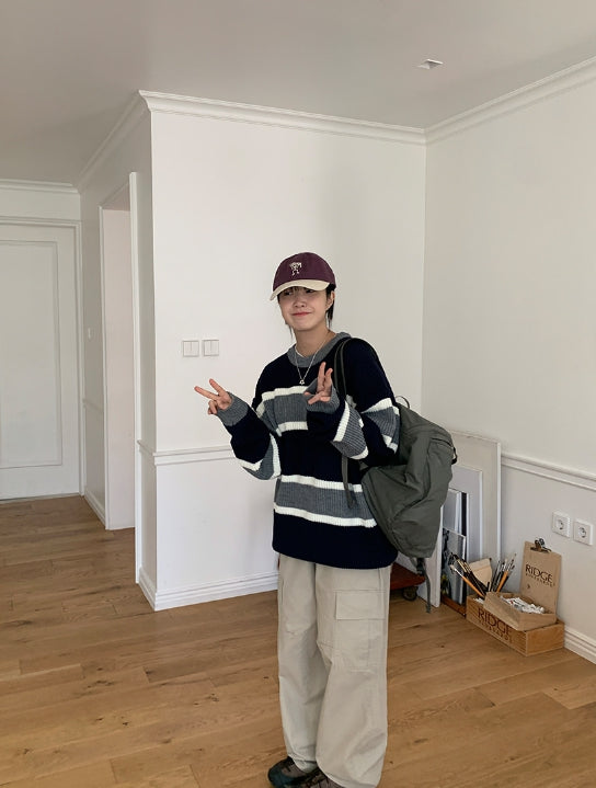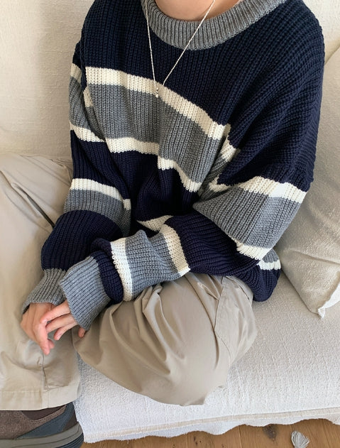 [男女兼用]ルハンストライプオーバーラウンドニット