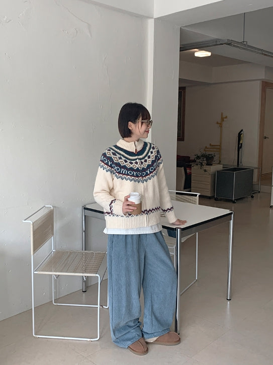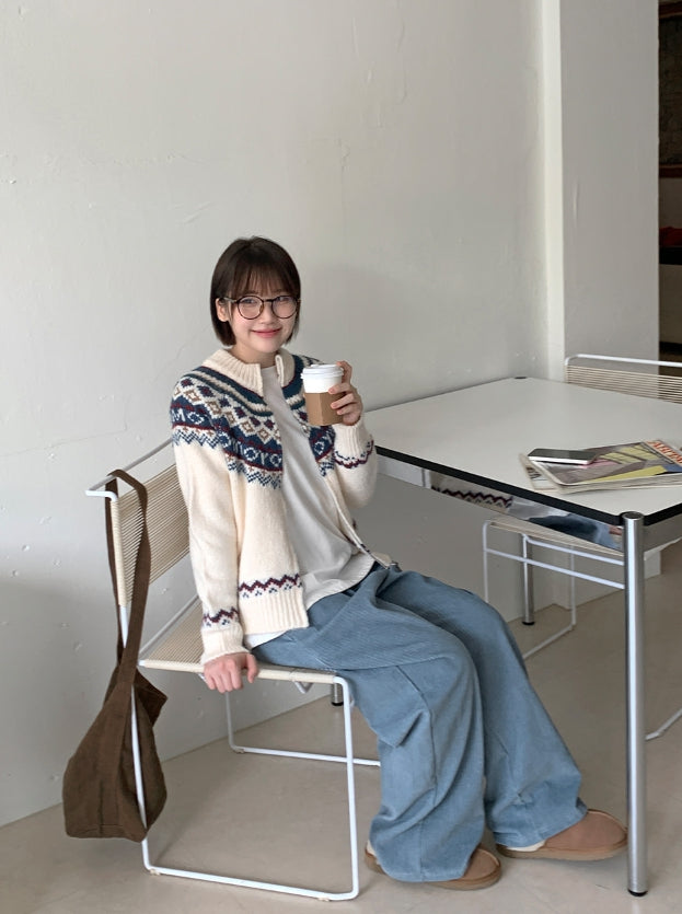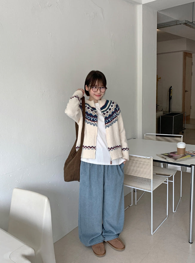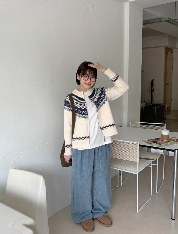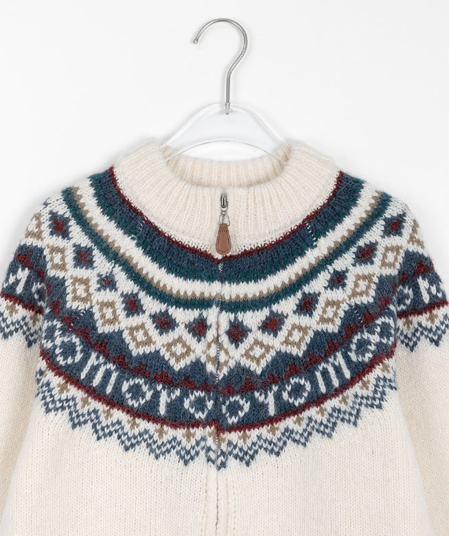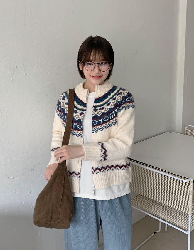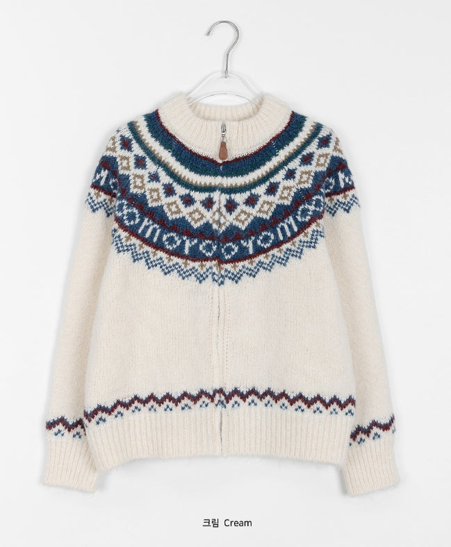 バニニノルディックラウンドウールニットジップアップカーディガン
