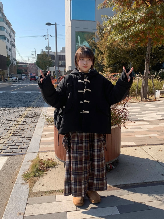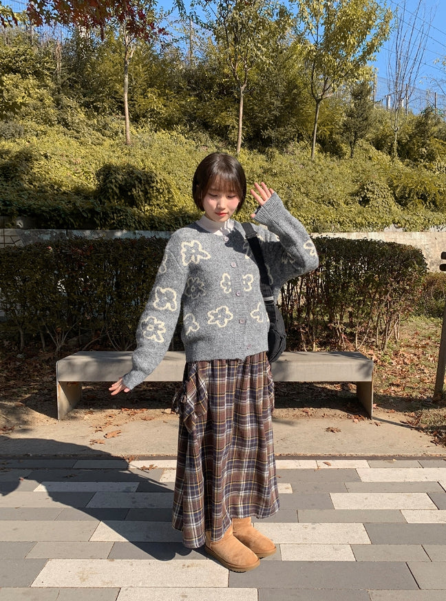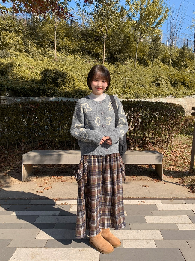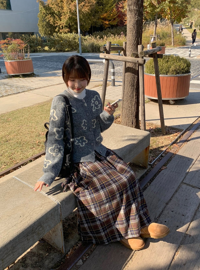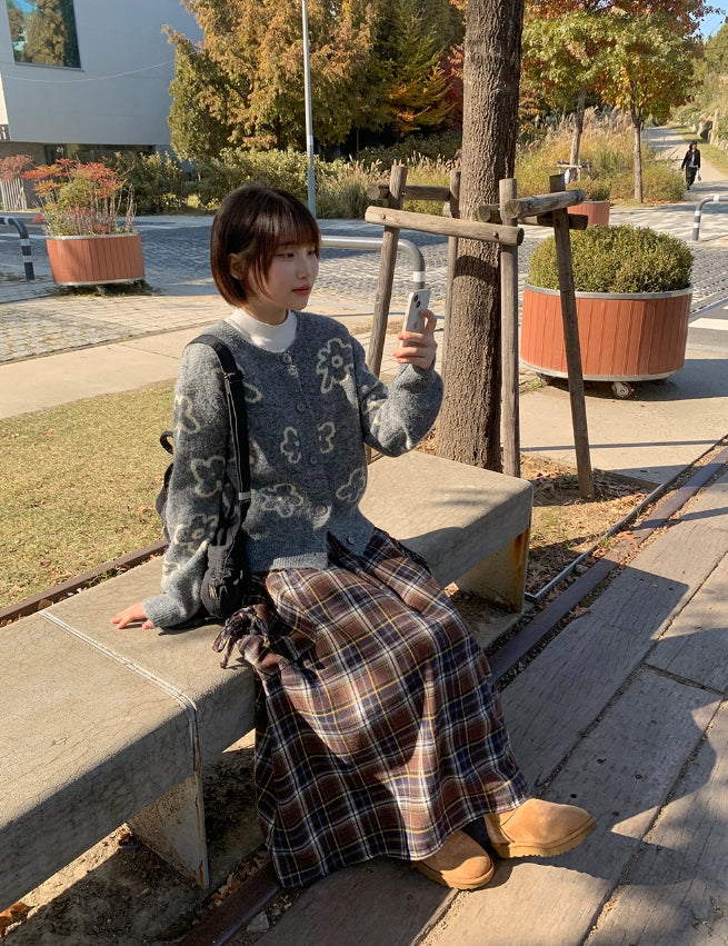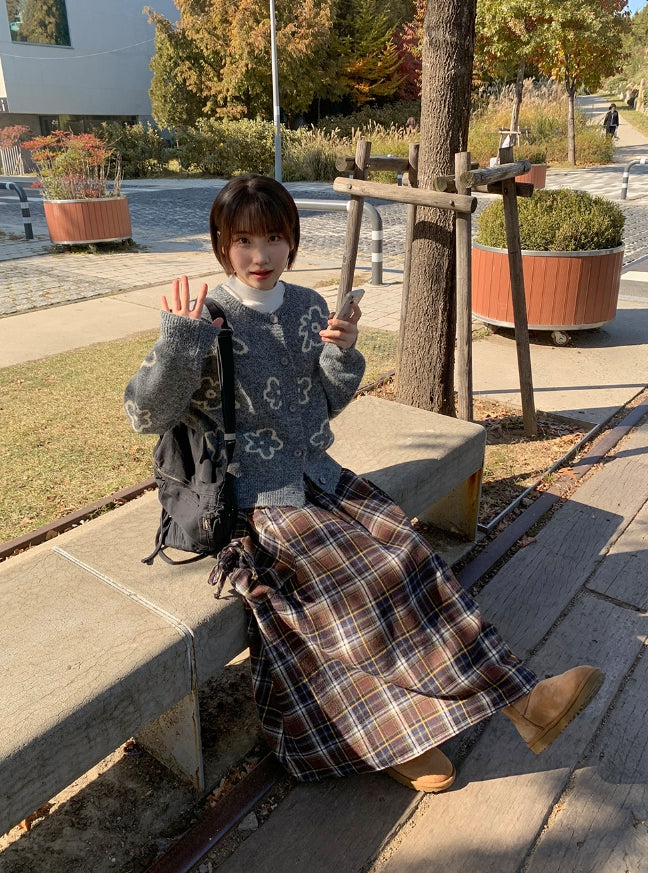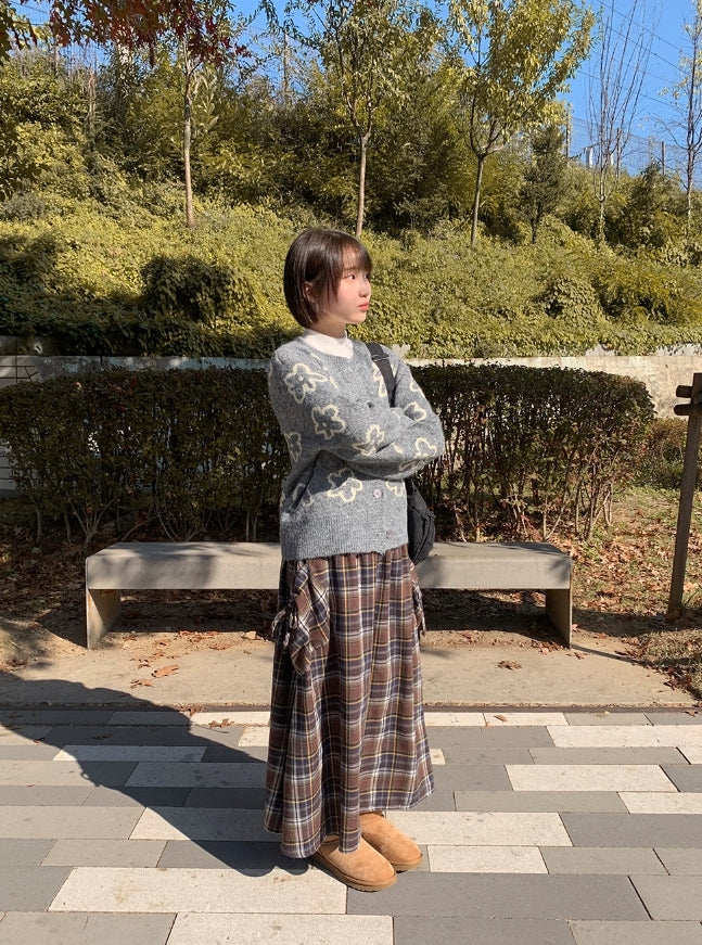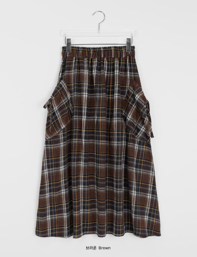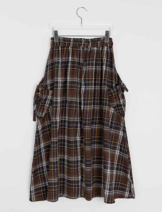 Vanku banding ribbon check long skirt