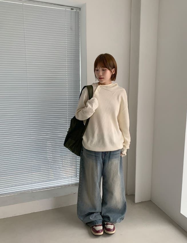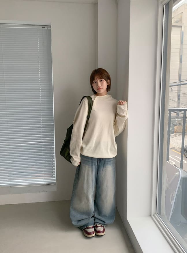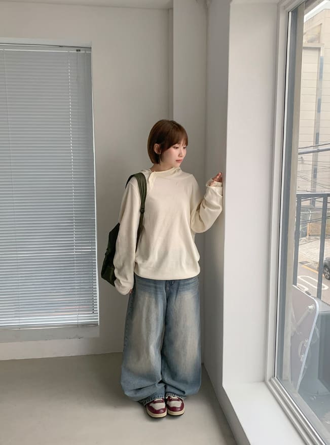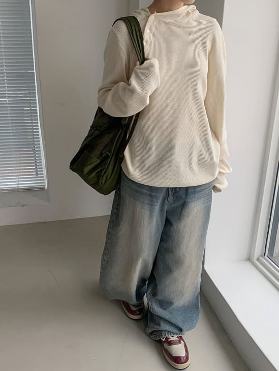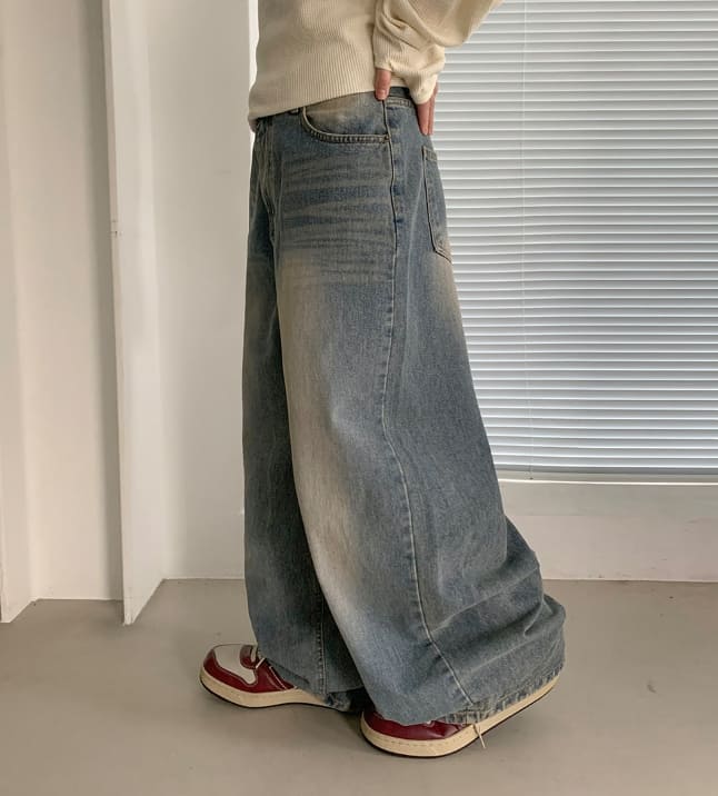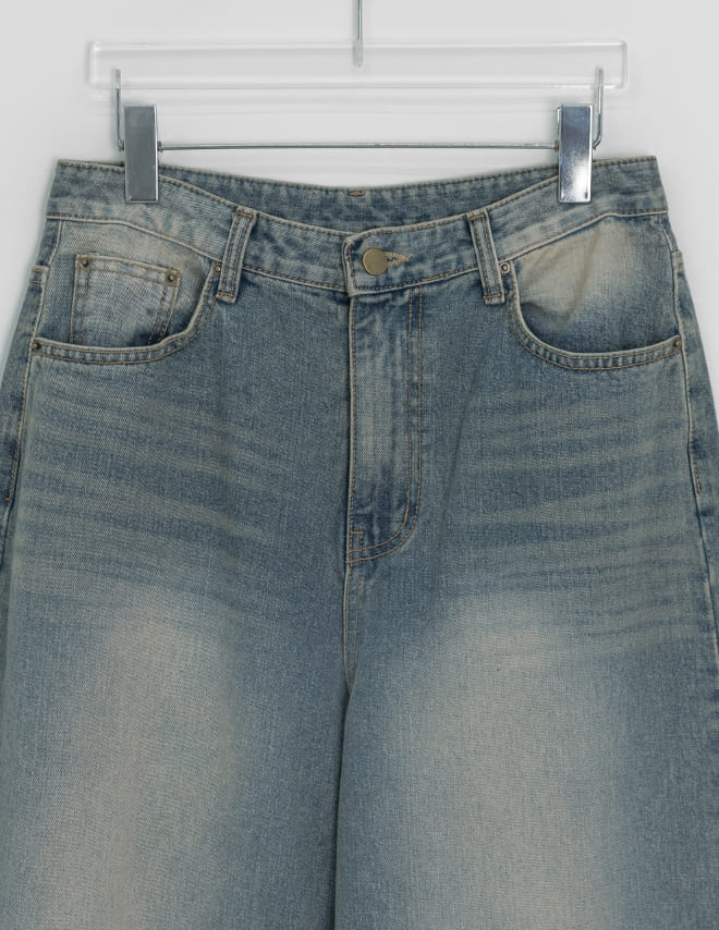 ビボンズウォッシュ加工デニムワイドパンツ