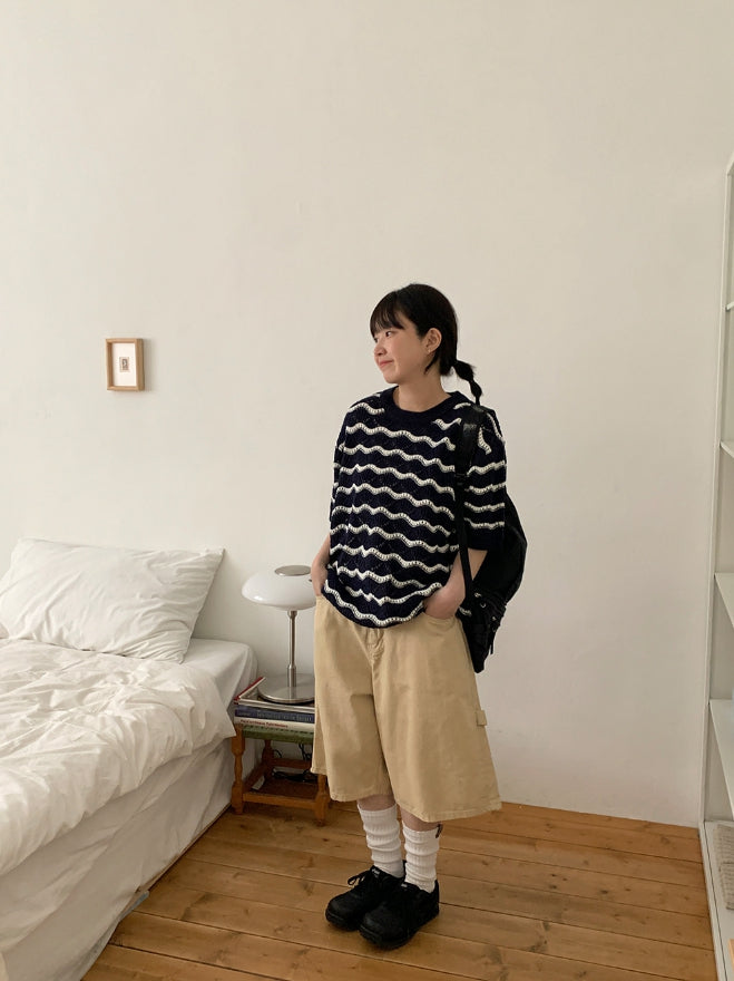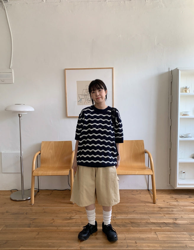 ワンツバンディングカーペンダーバミューダコットンパンツ