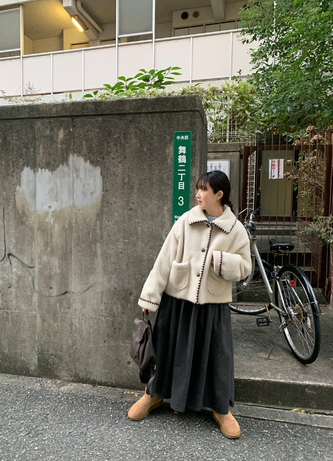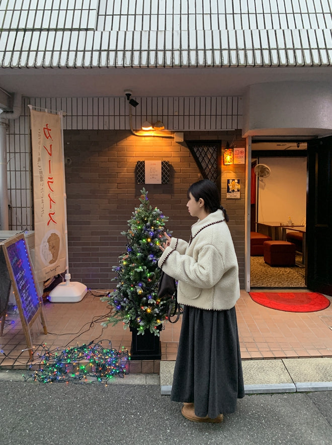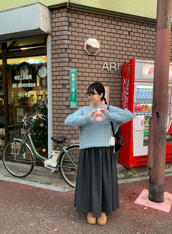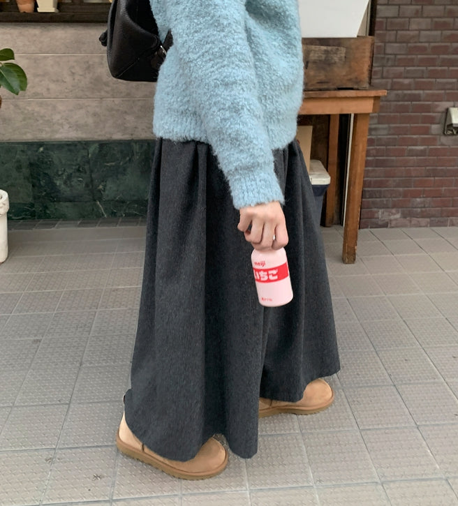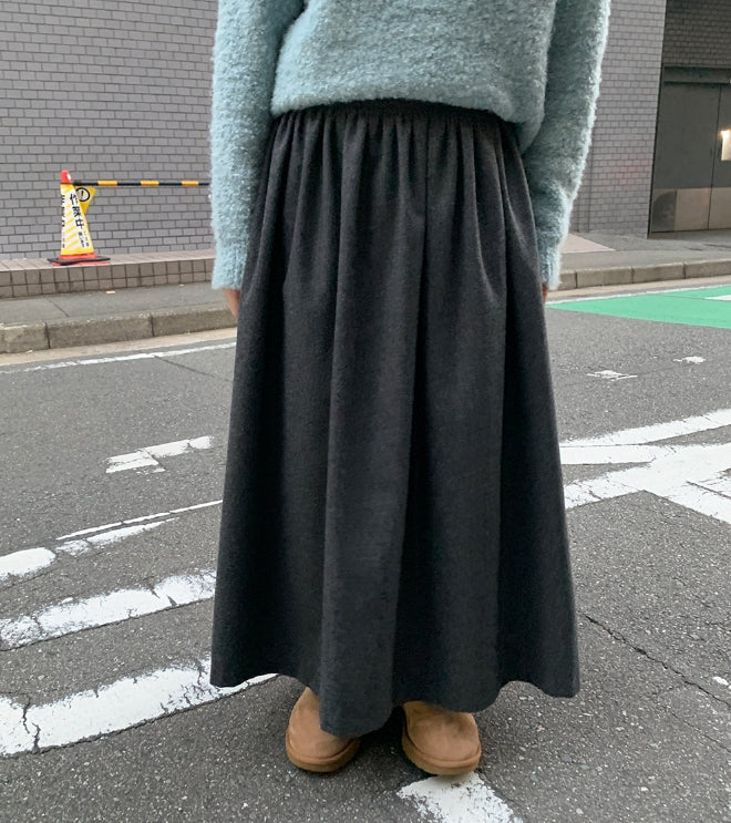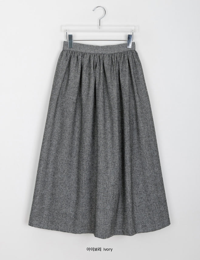 ウィルビーヘリンボーンウールバンディングフレアロングスカート