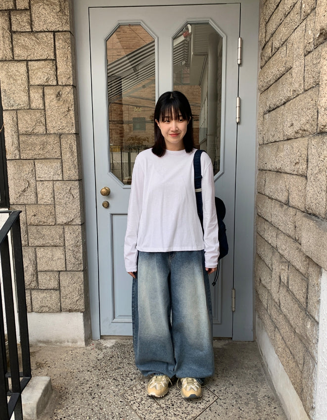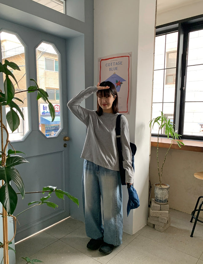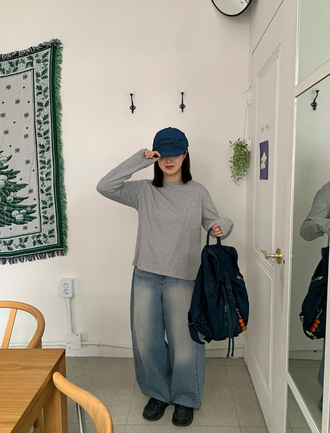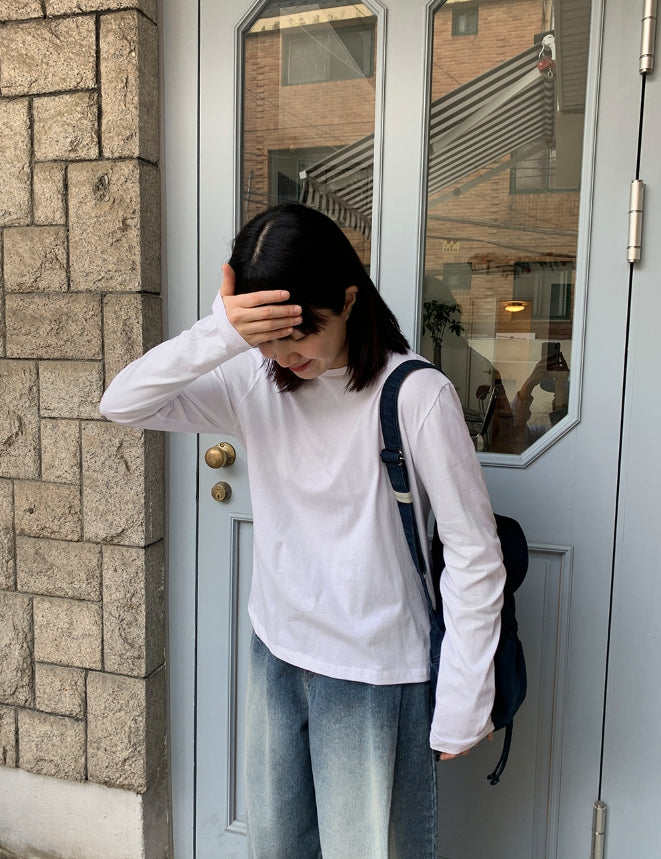 ヨッコラウンドコットンベーシック長袖Tシャツ