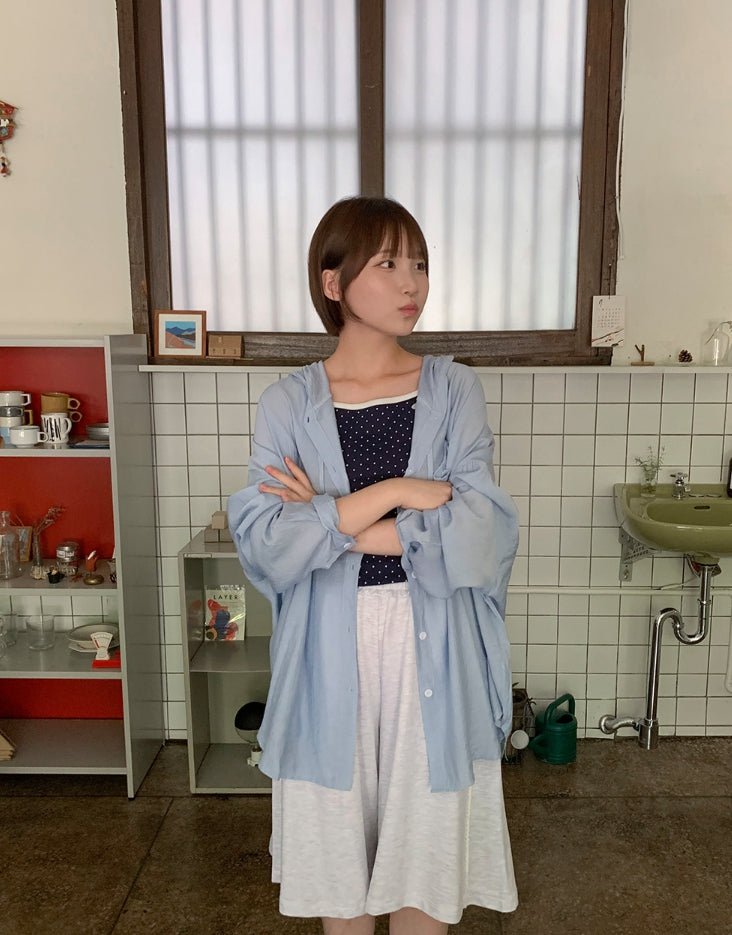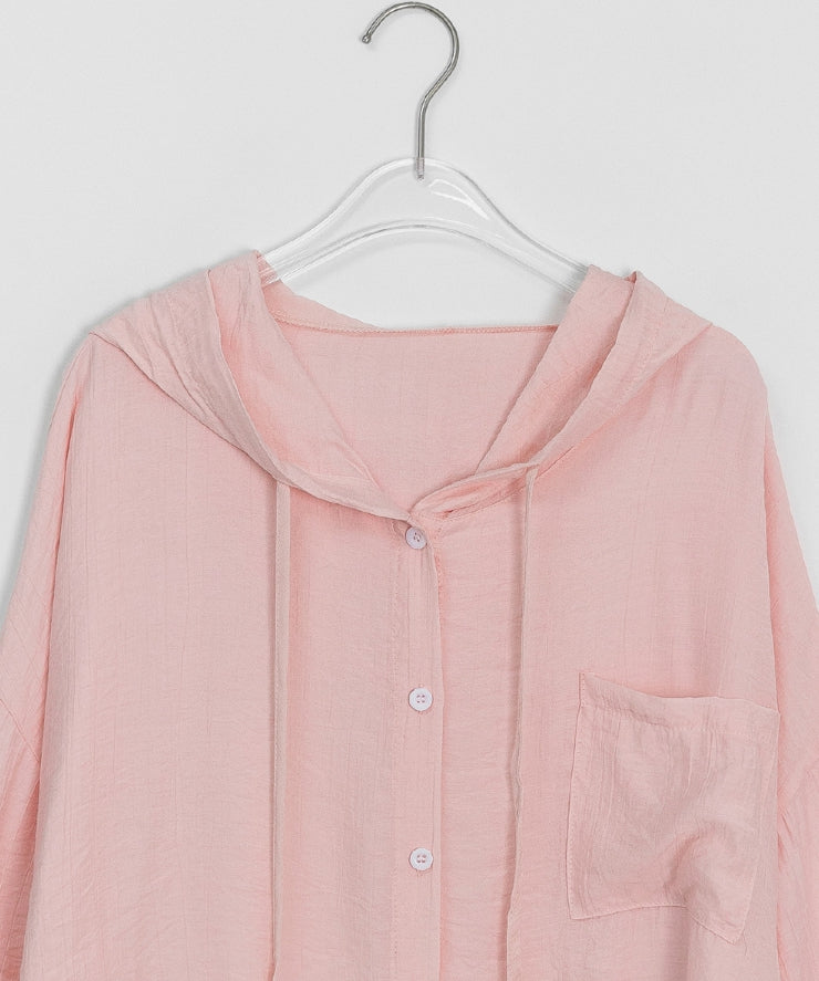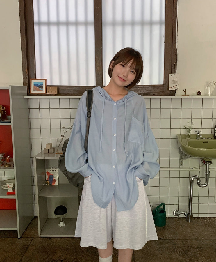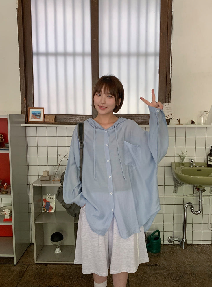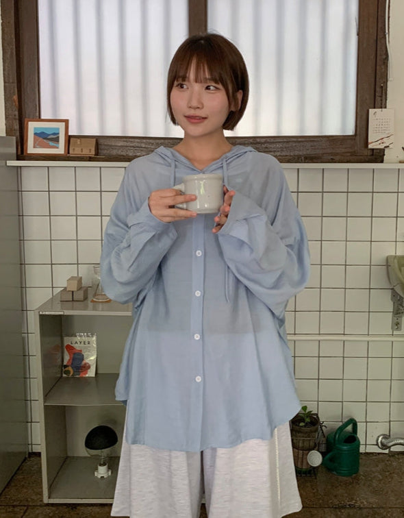 Youkus Summer Hood See-through Long Sleeve Shirt