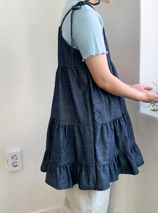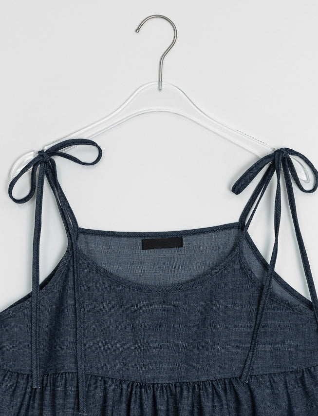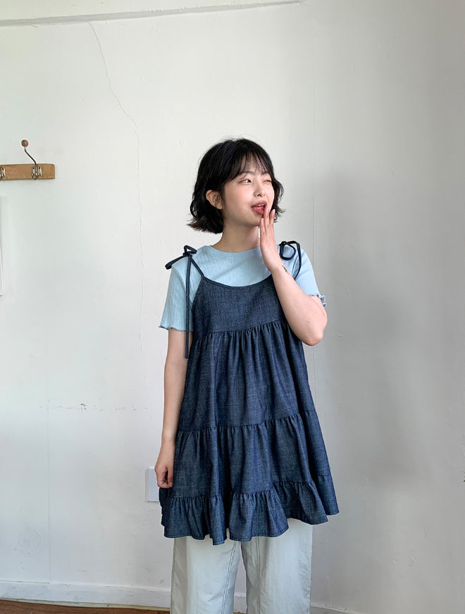 ユブンデニムティアードキャミソールレイヤードワンピース
