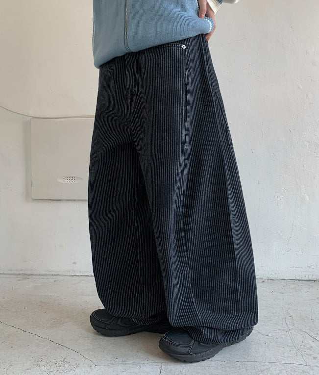 ユハイストライプバルーンワイドデニムパンツ