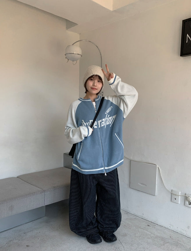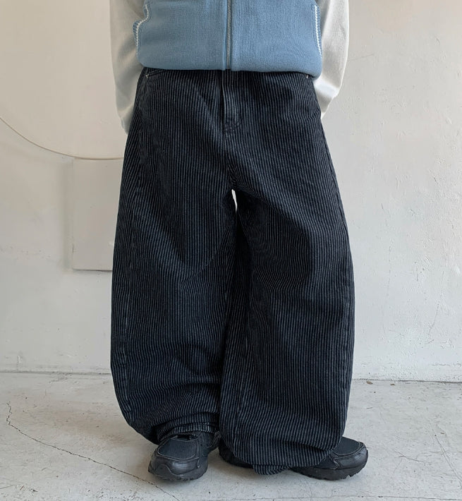 Yuhai Stripe Balloon Wide Denim Pants