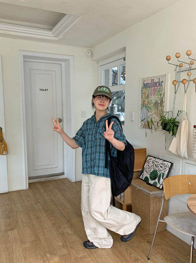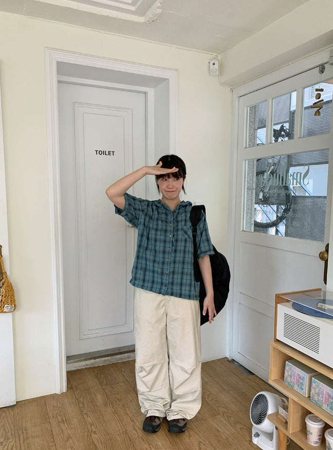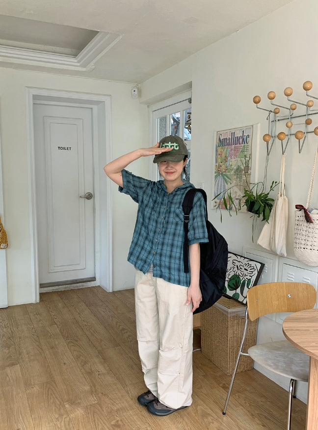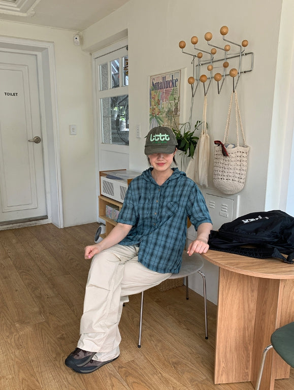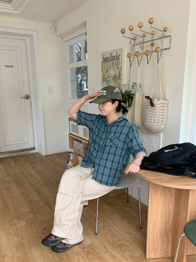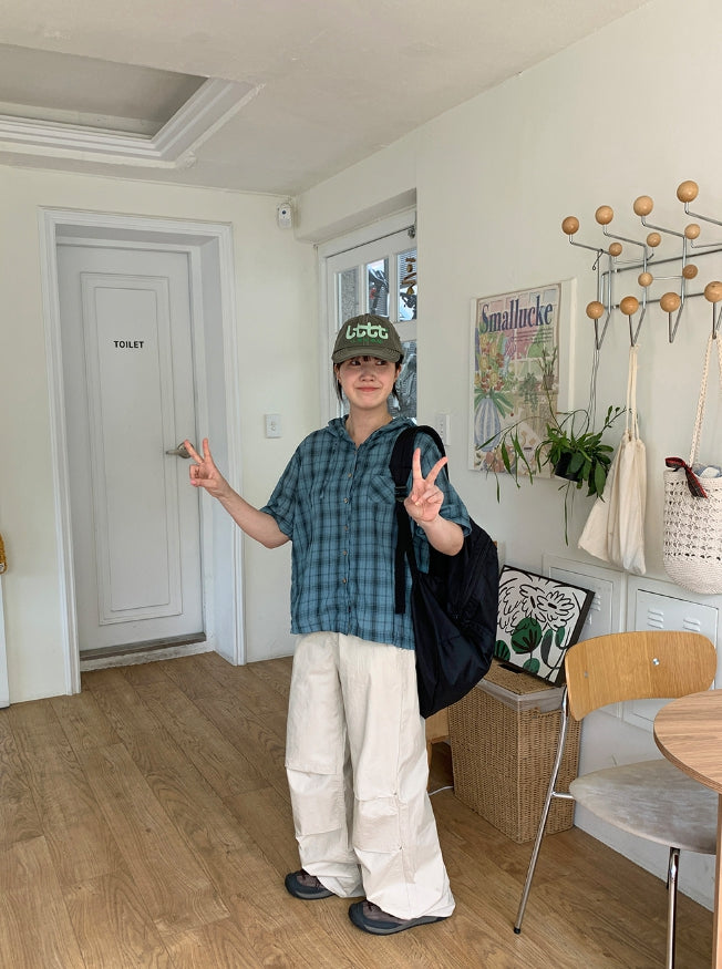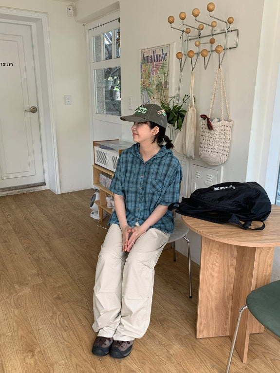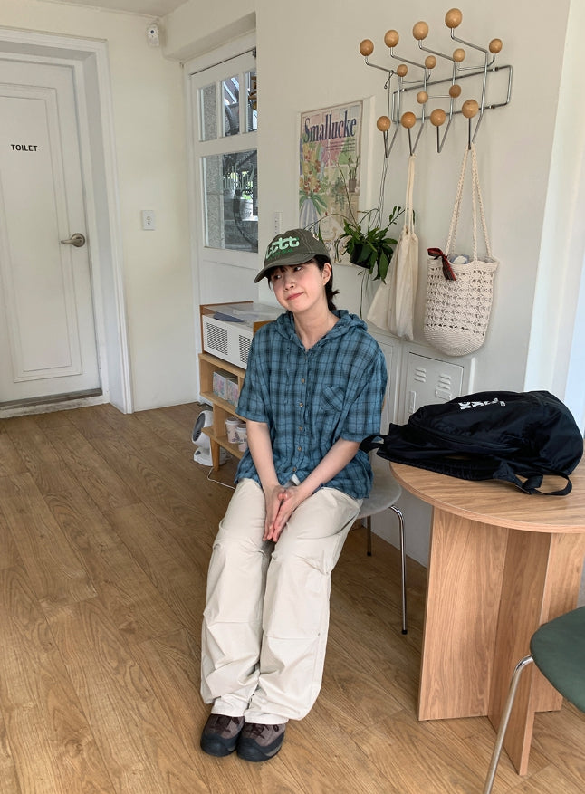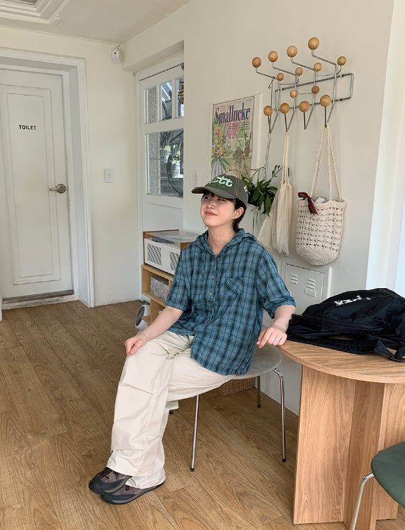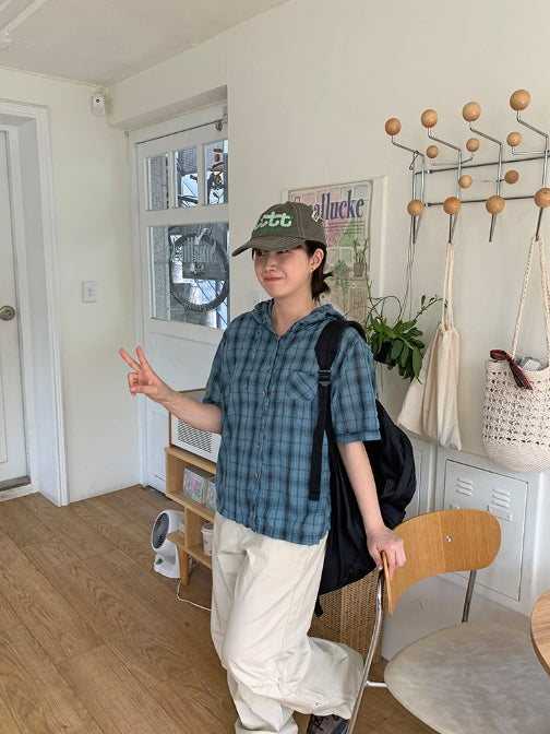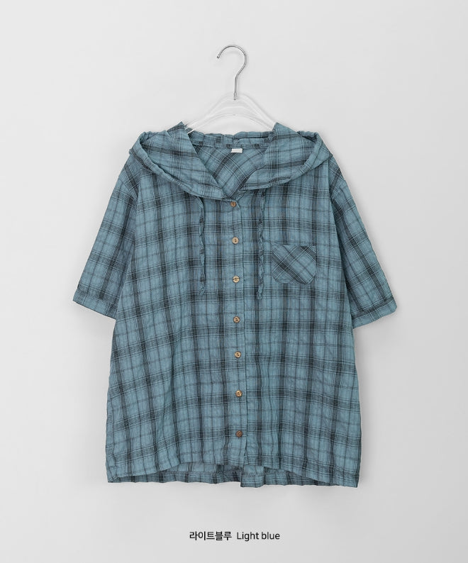 Yuito Seersucker Check Hood Short Sleeve Shirt