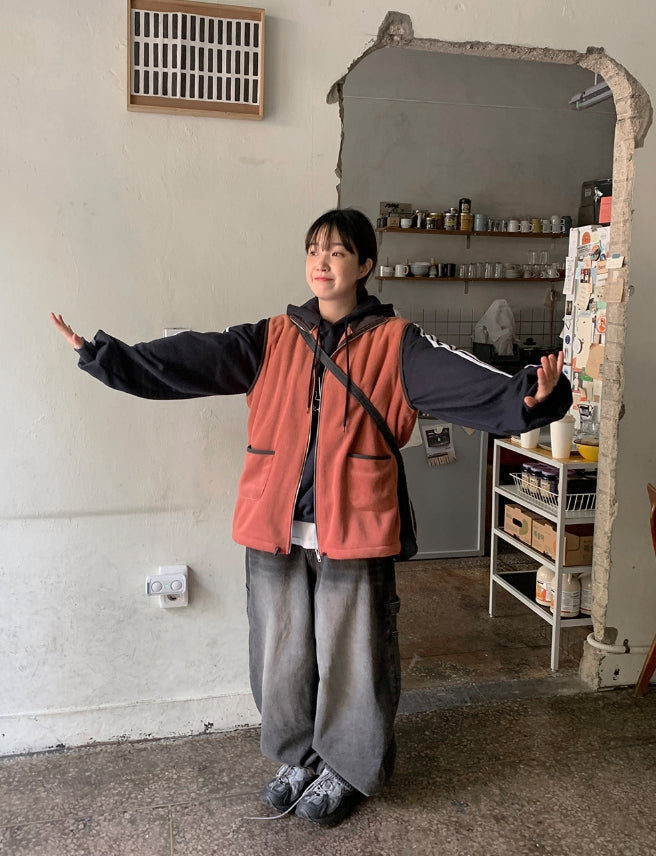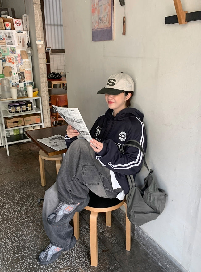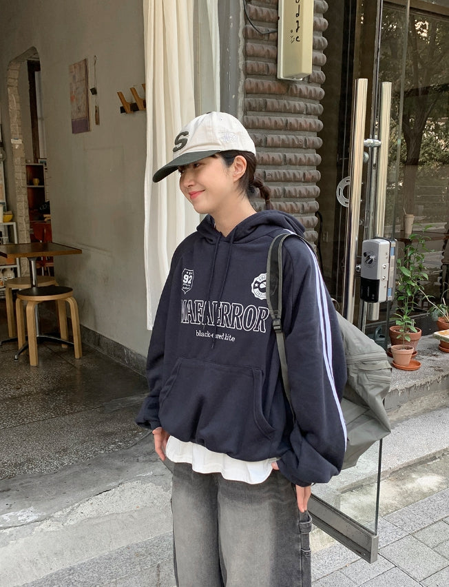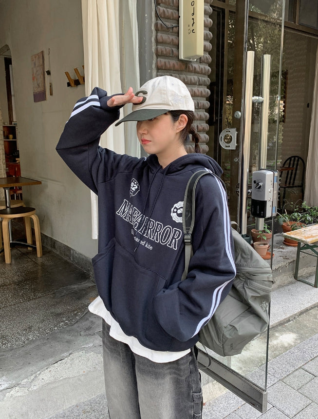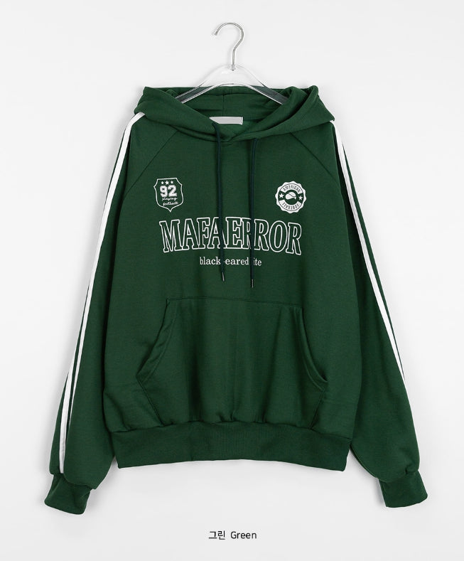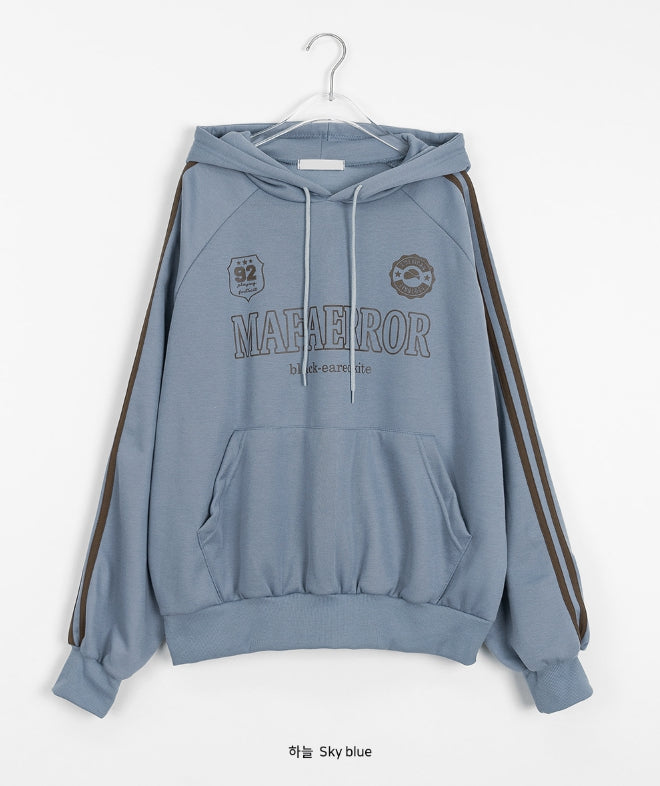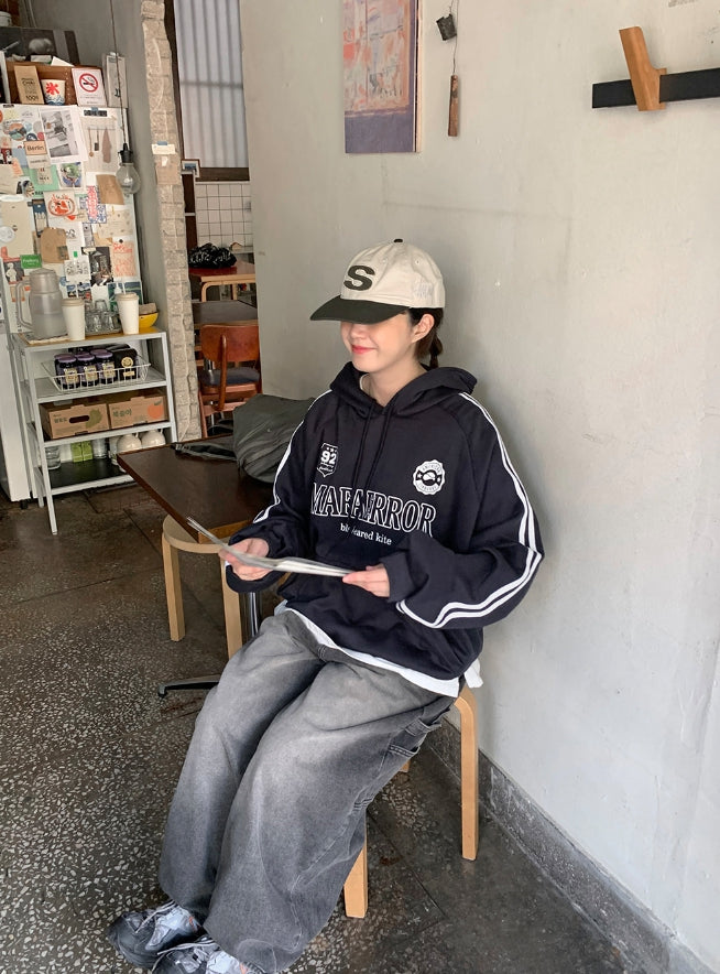 Yunaki Track Color Matching Raglan Lettering Hoodie