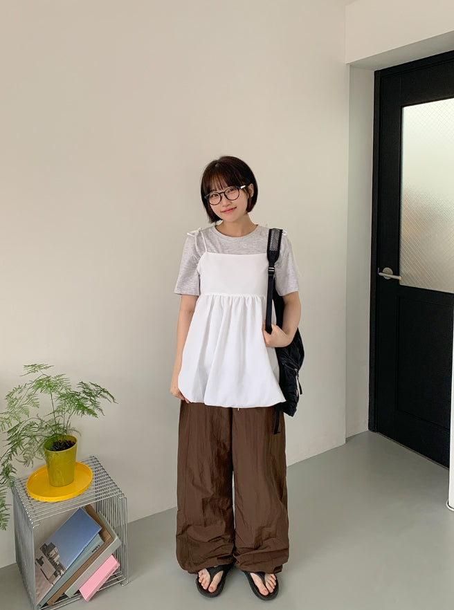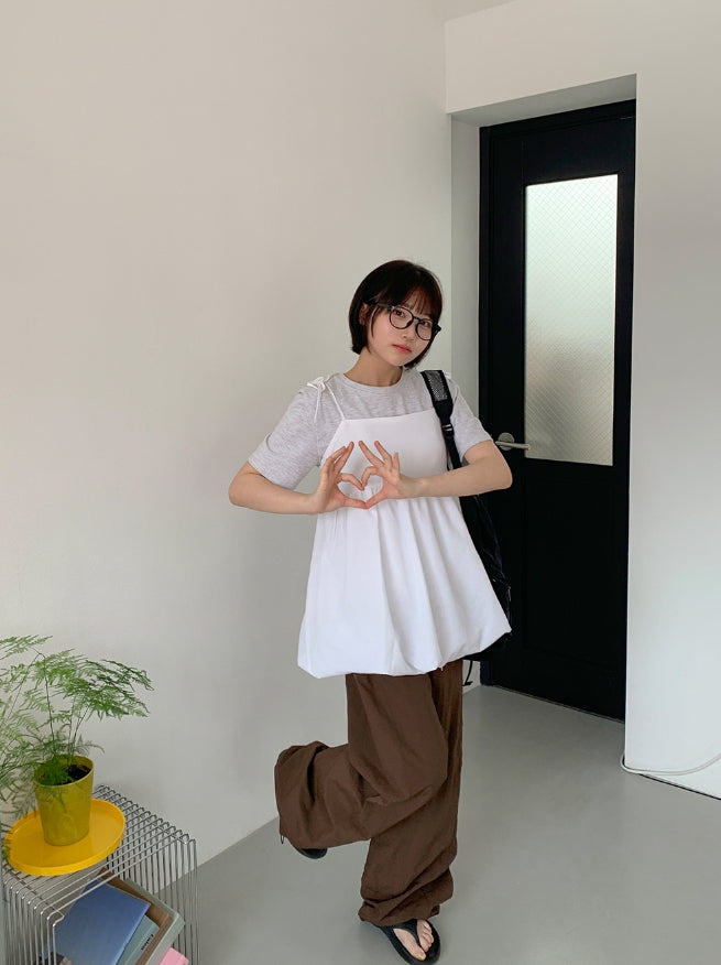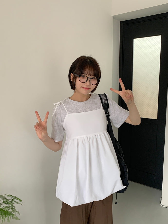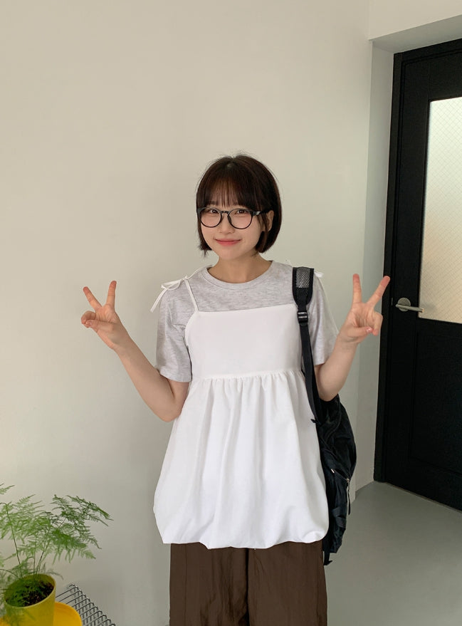 Yuriyu Ribbon Layered Balloon Sleeveless Blouse