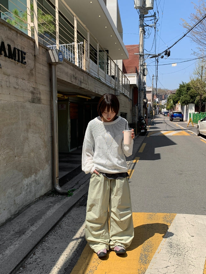 -ONE SIZE (ウエスト(ゴム)64-96 ヒップ112 股上36 股下66.5 もも周り71 裾周り(調整可能)8-54 総丈102.5)