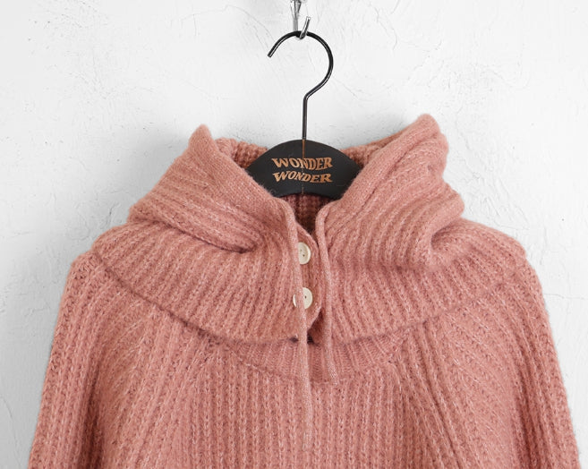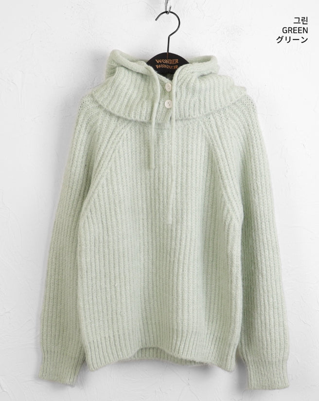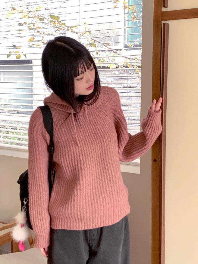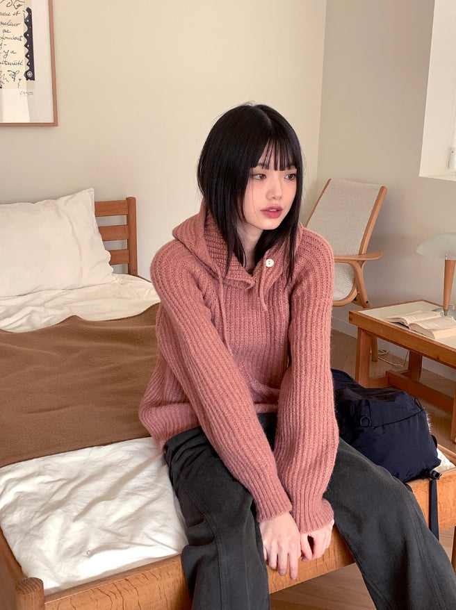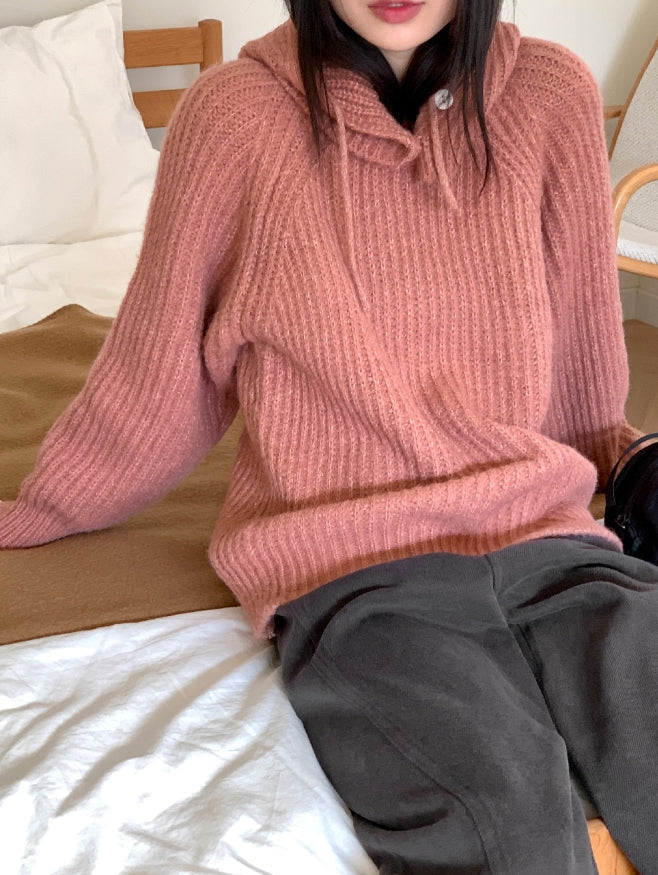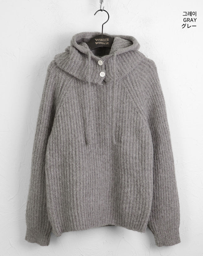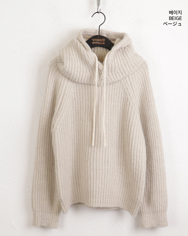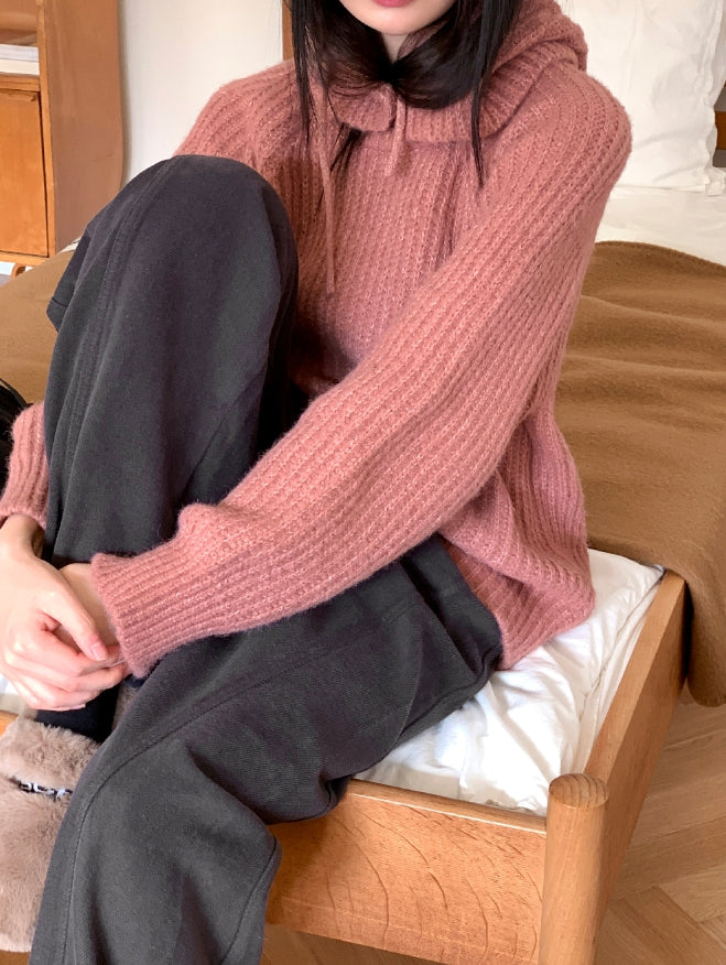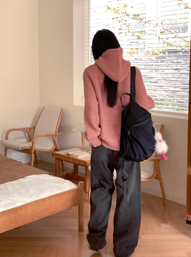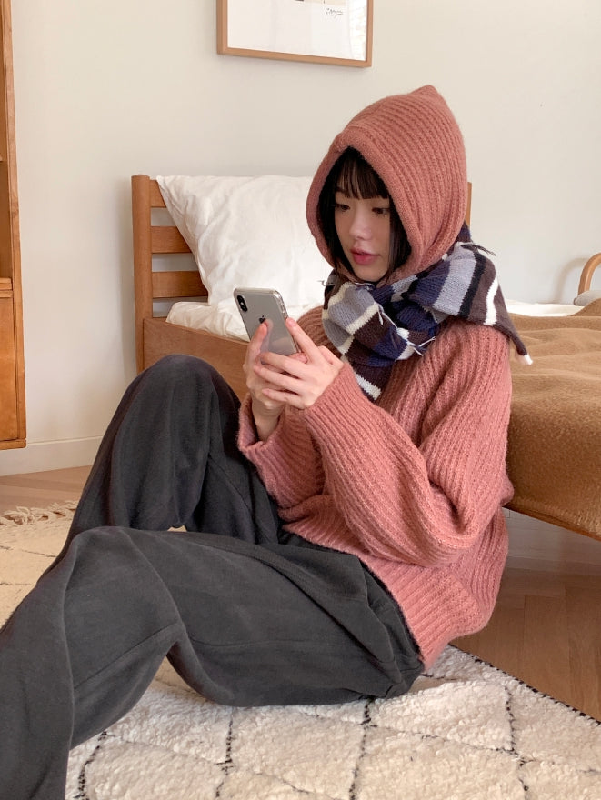 [Balaclava Set] Creama Hood Hachi Round Loose Fit Long Sleeve Knit