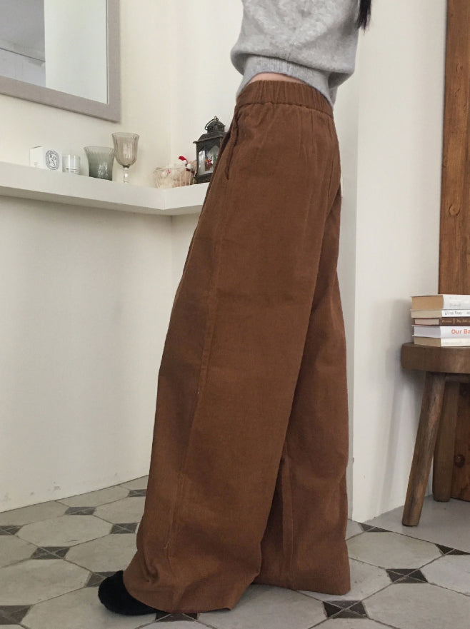 Beeton Back Banding Pintuck Corduroy Long Wide Pants