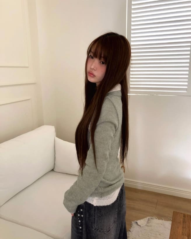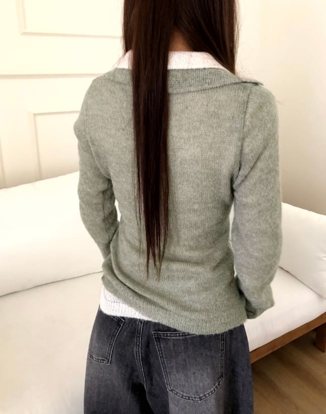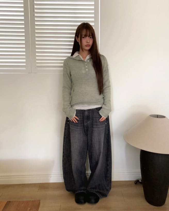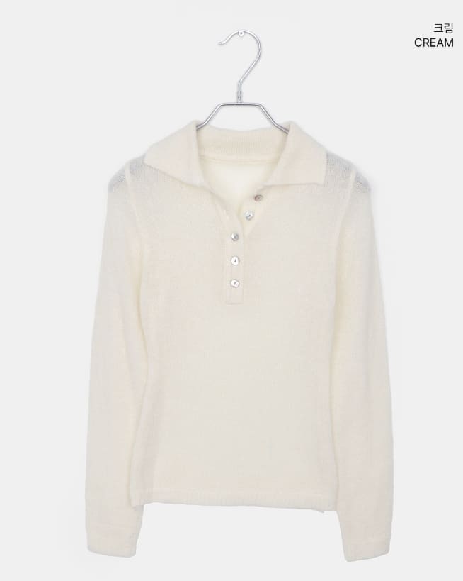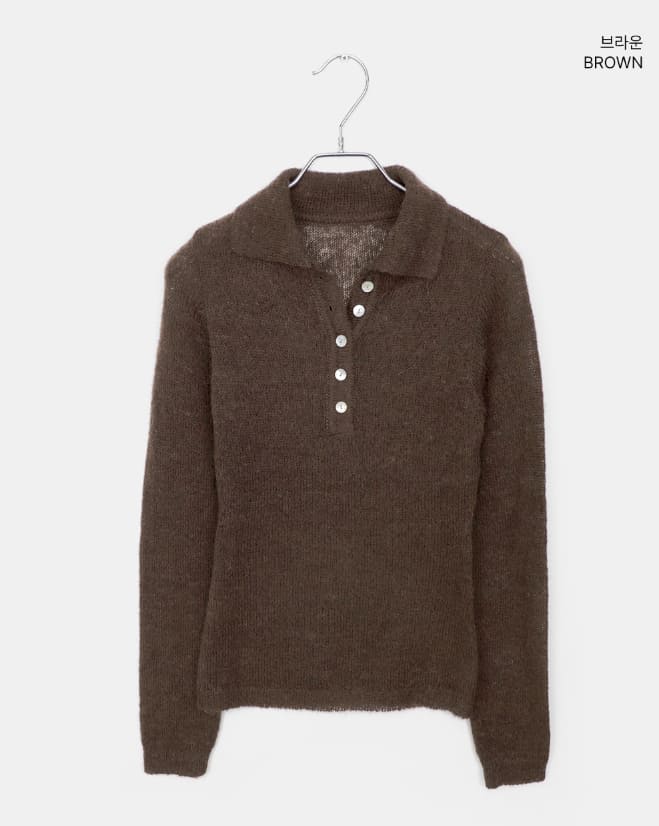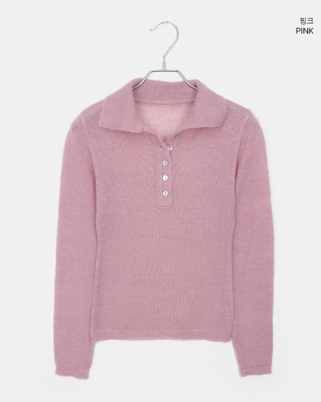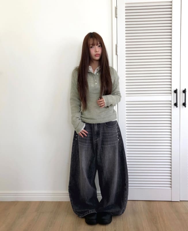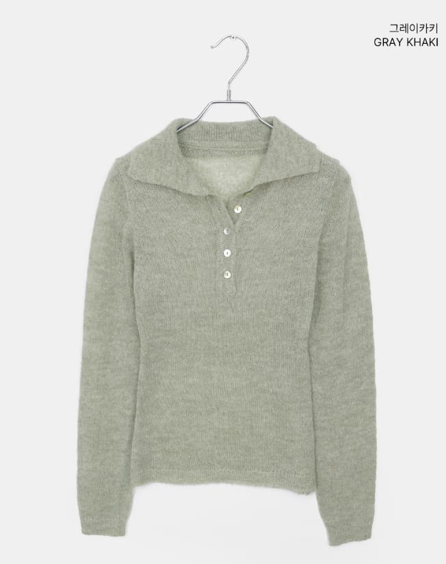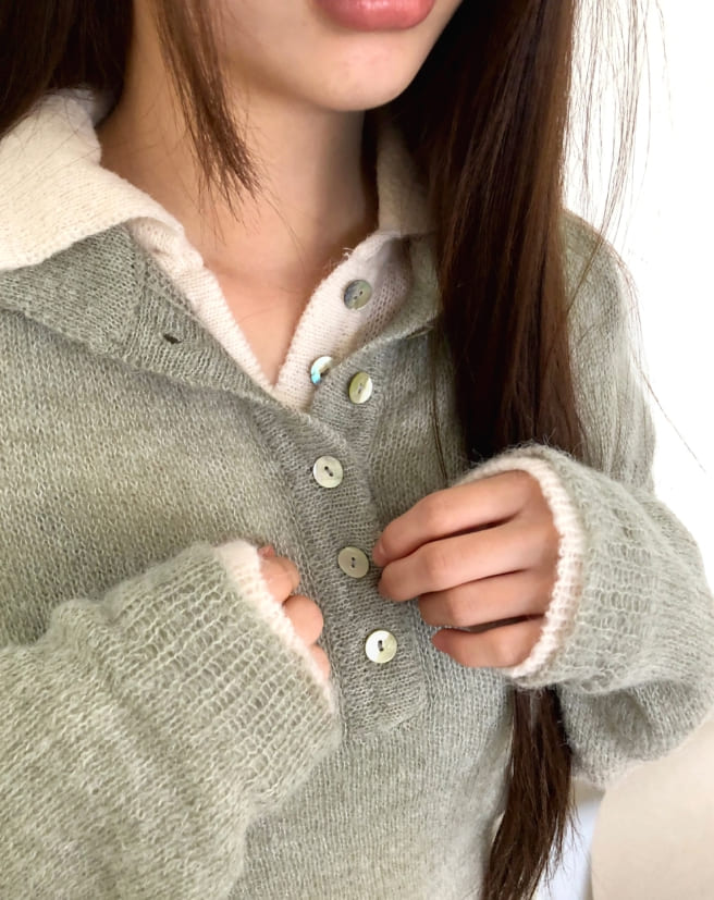 Bekil Henley Neck Collar Wool Long Sleeve Knit