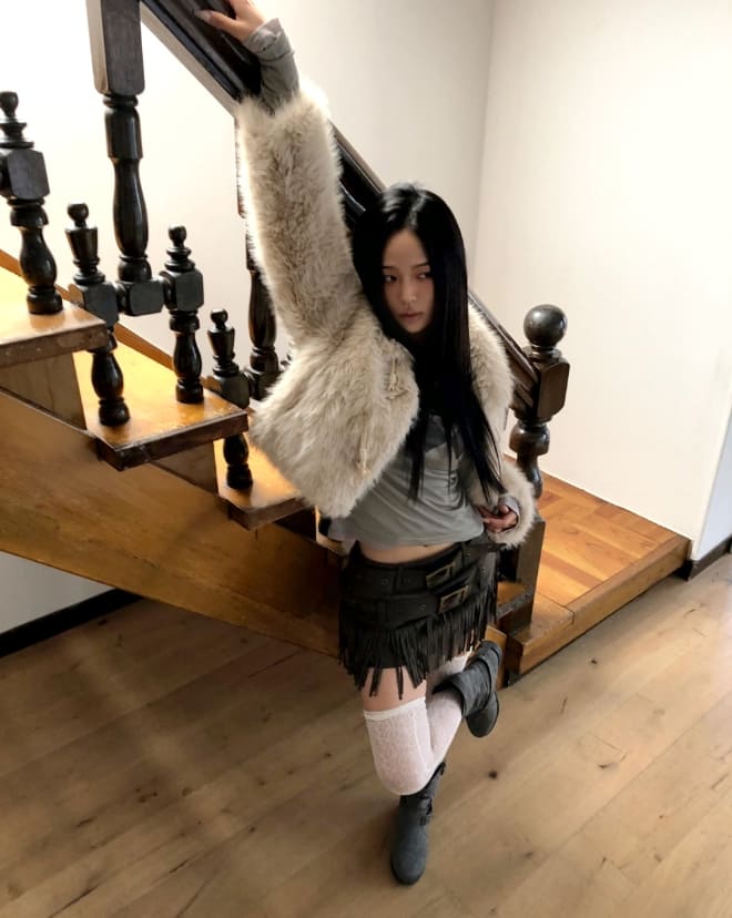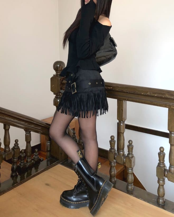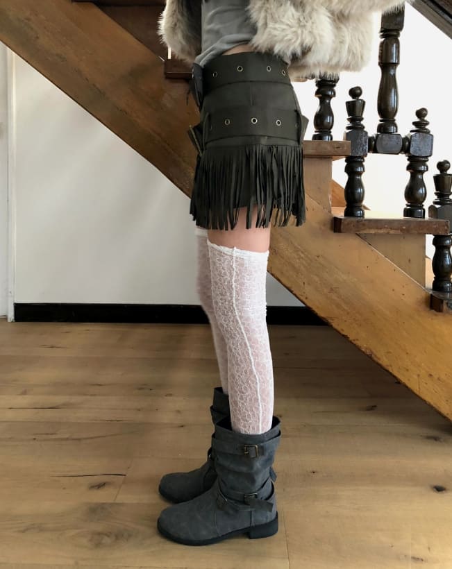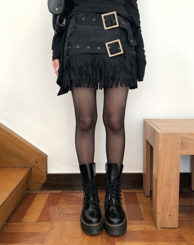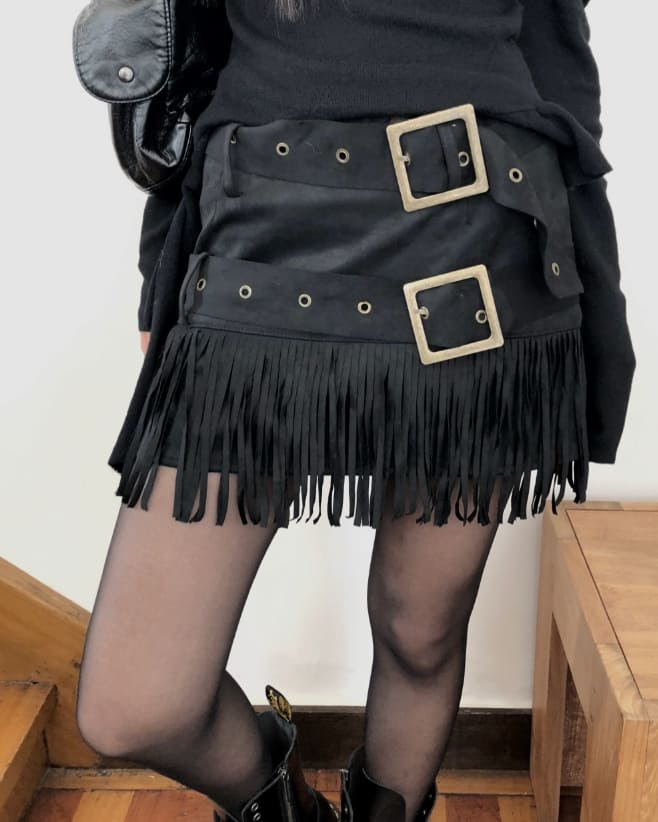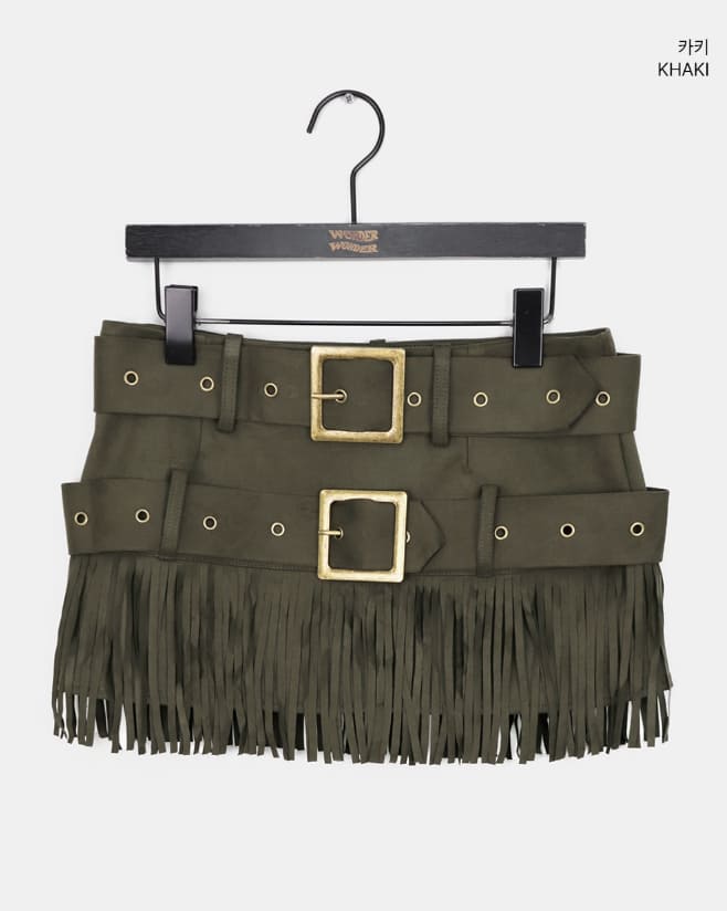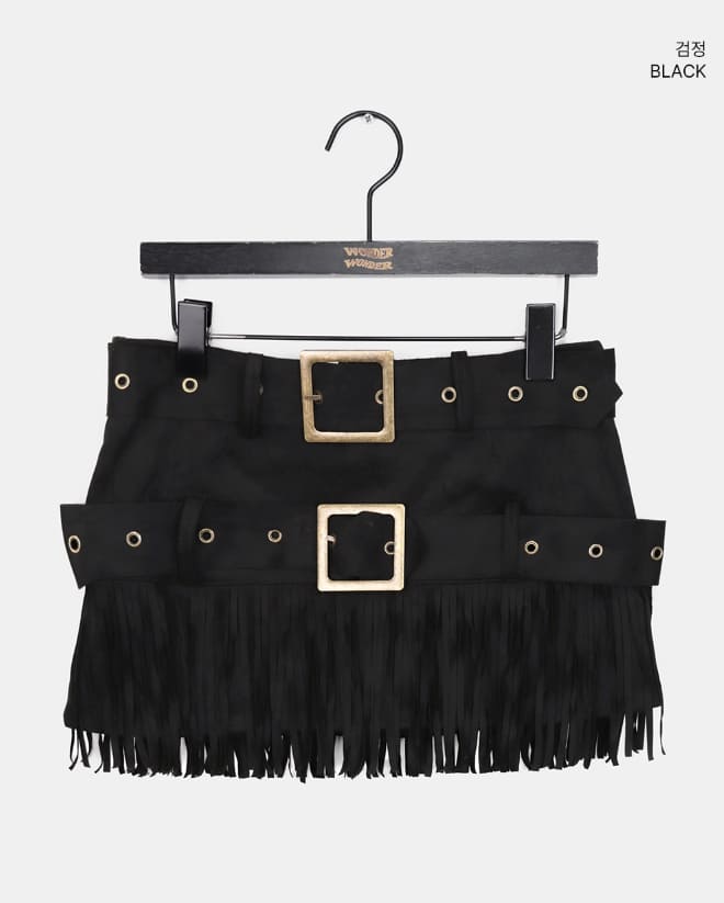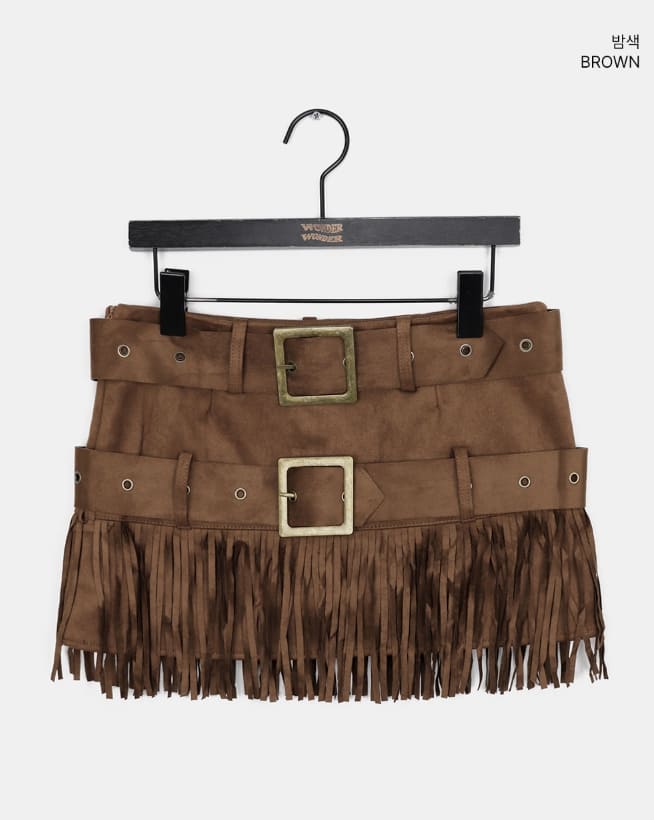 [Belt set] Leah Suede Two-Belt Tassel Mini Skirt