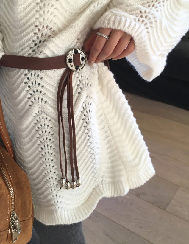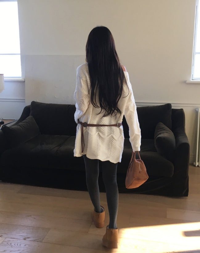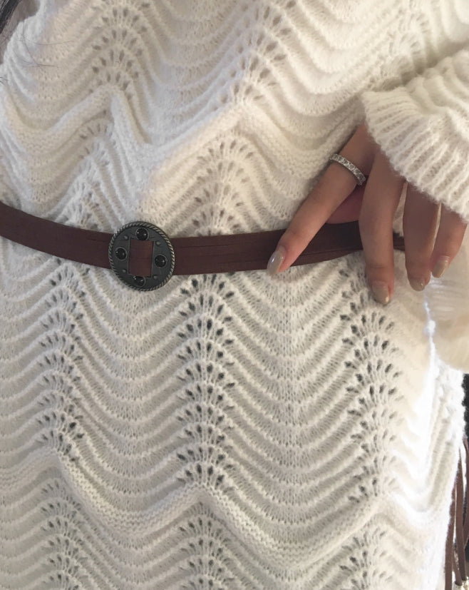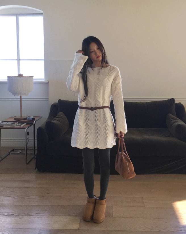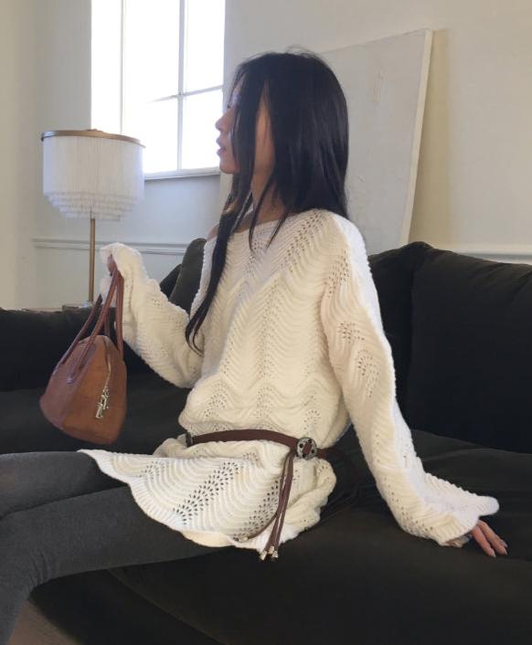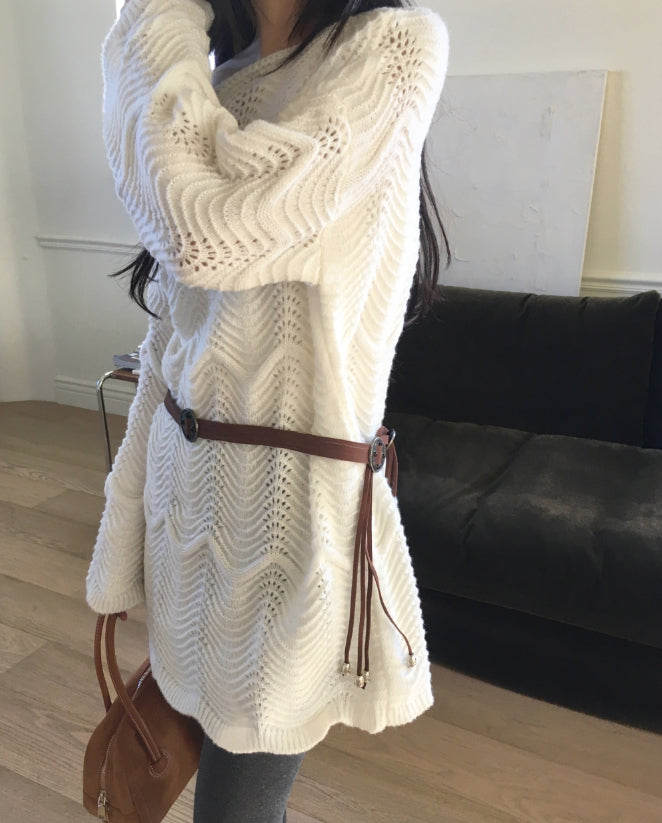 [年末ルック/ベルトセット]モンネル波ウェーブニットワンピース