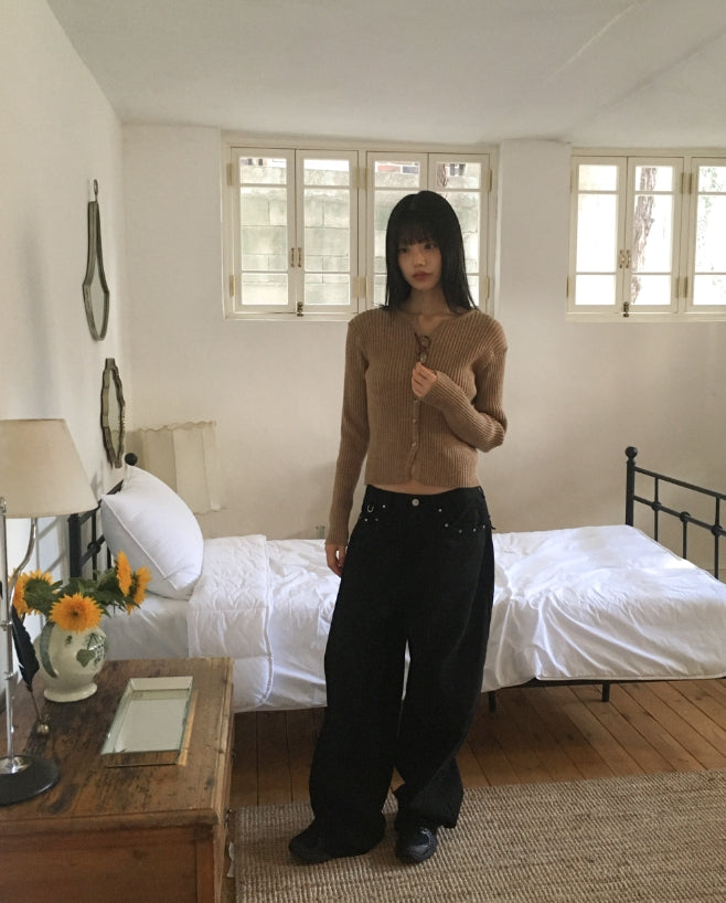Benon Star Rivet Wide Cotton Pants