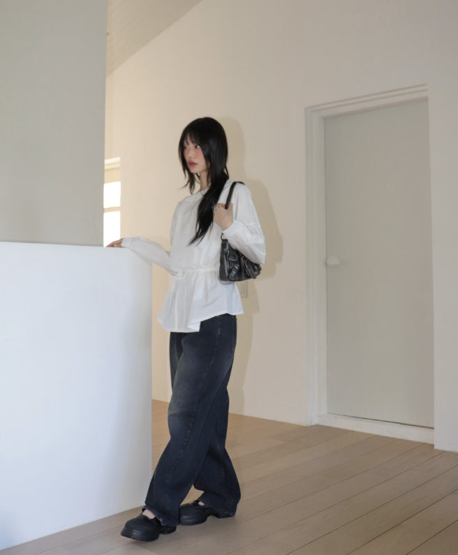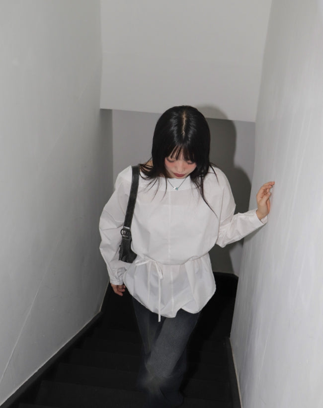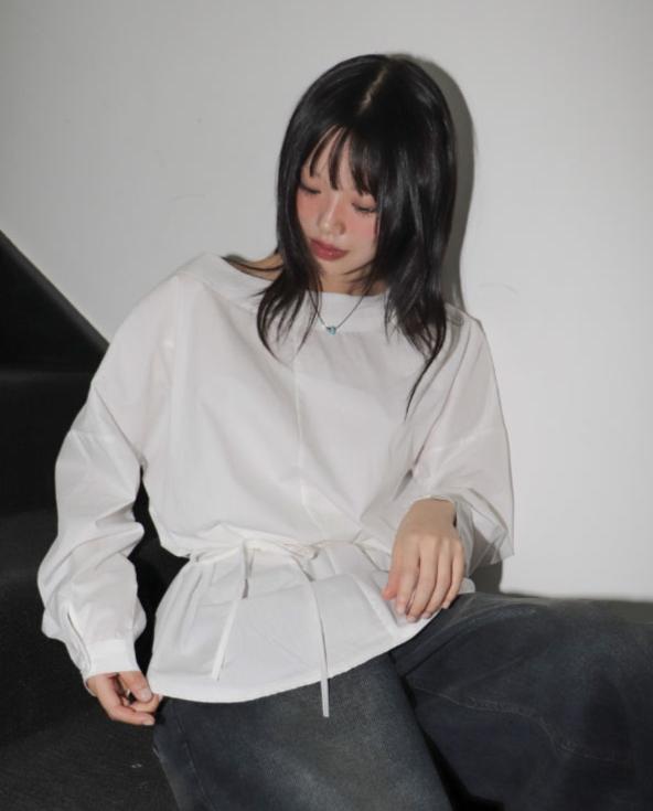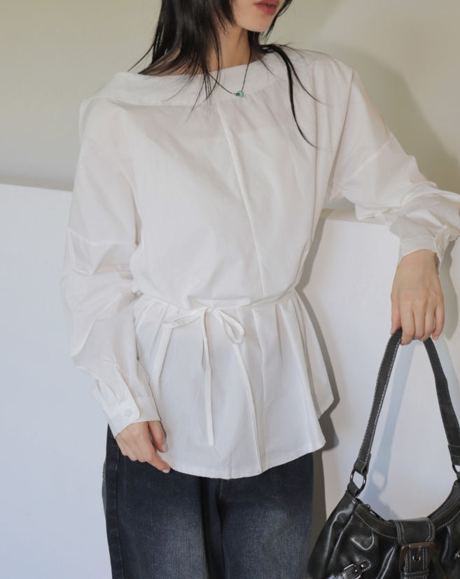 Beunu one-shoulder muffler strap blouse shirt
