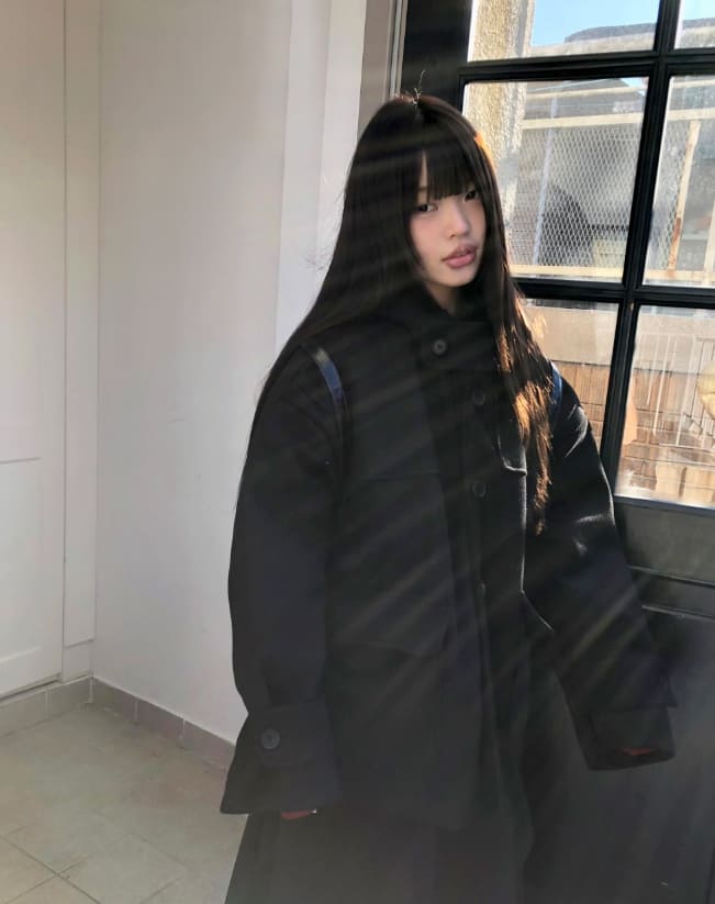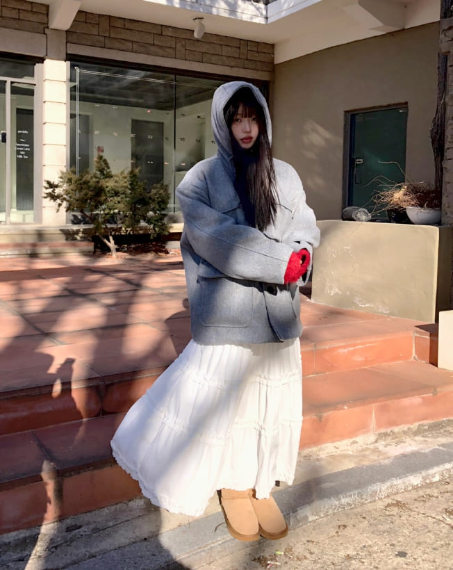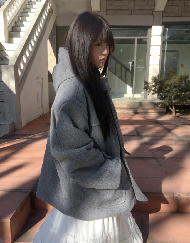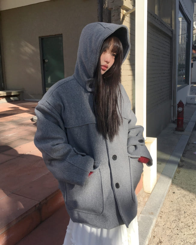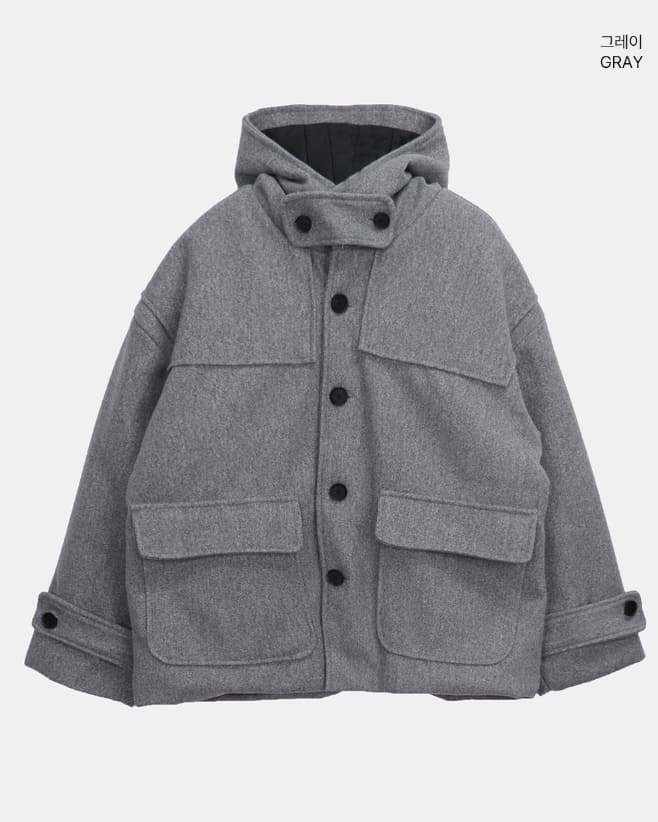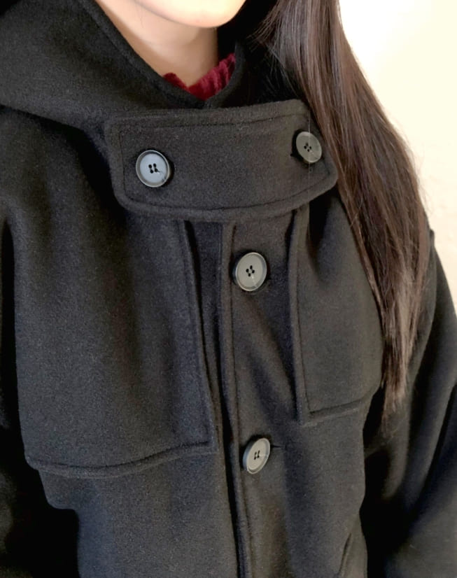 Bhin Big Pocket High Neck Bijou Wool Hooded Half Coat