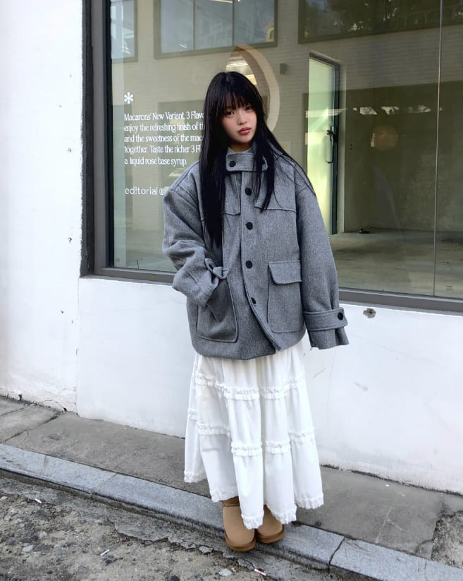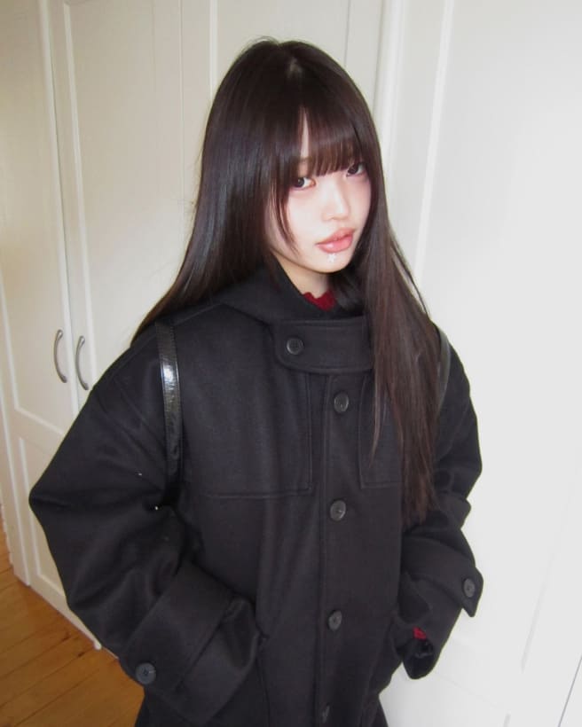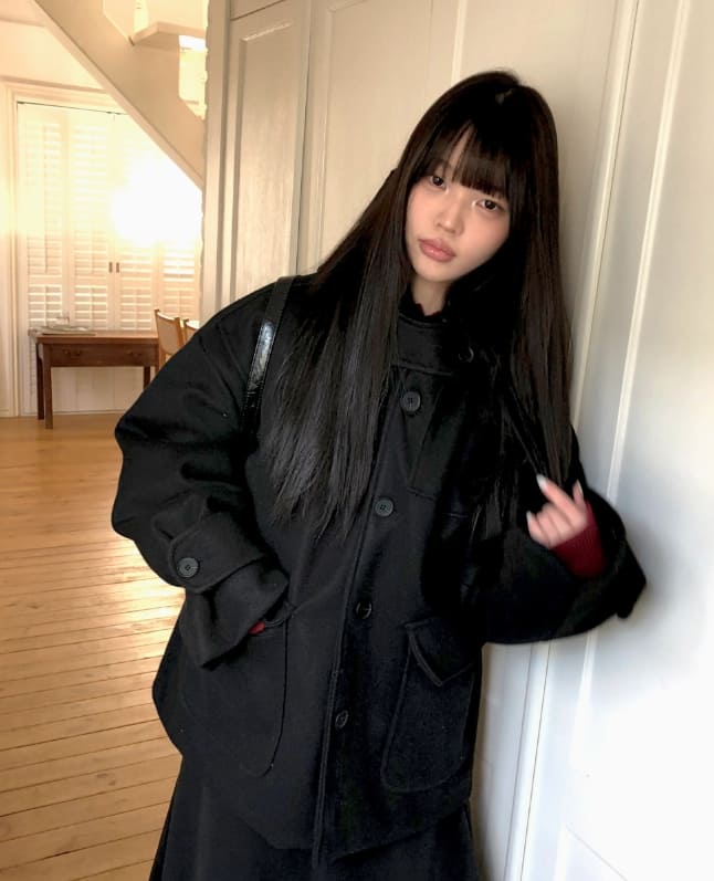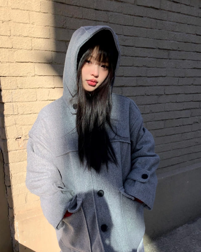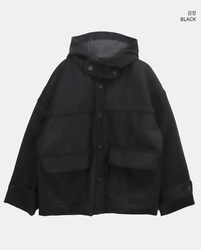Bhin Big Pocket High Neck Adjust Wool Hood Half Coat