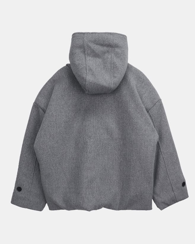 ブヒンビッグポケットハイネックアジャスターウールフードハーフコート