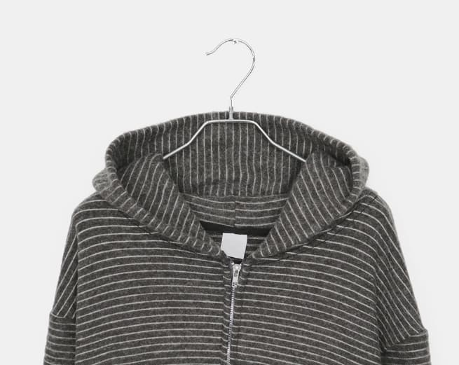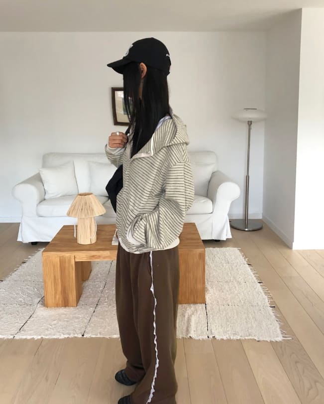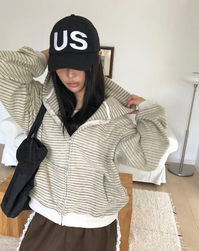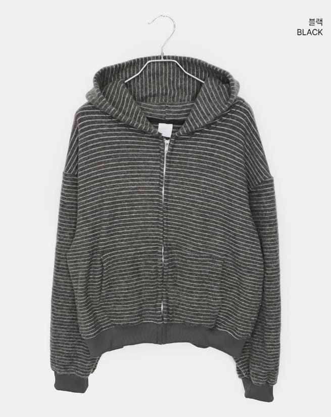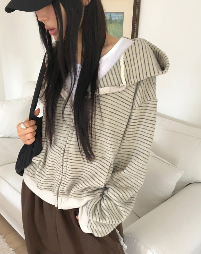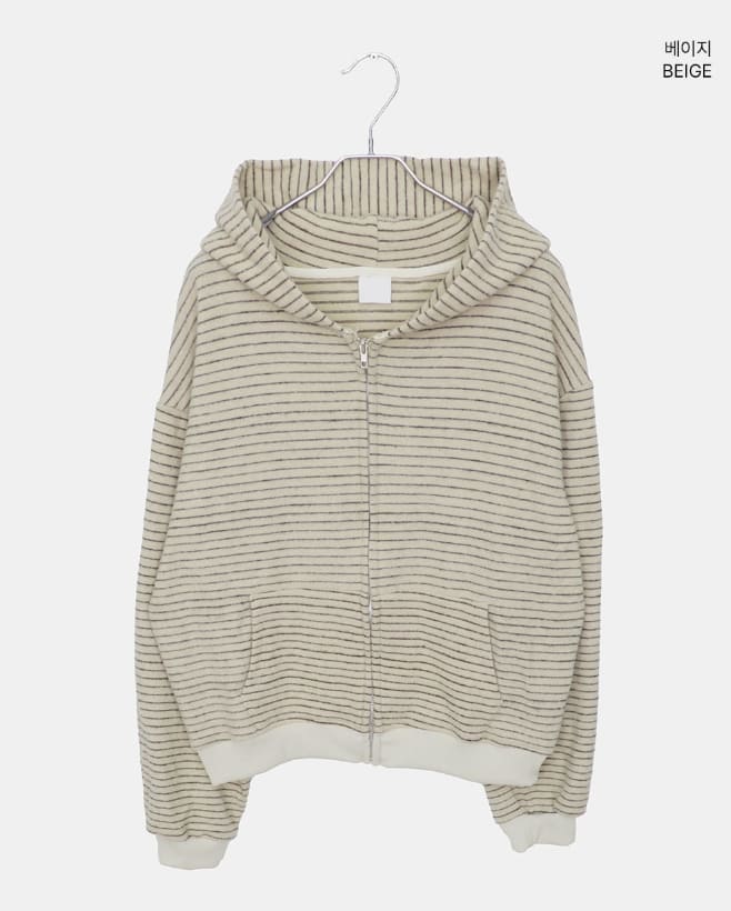 Bima Stripe Pocket Loose Fit Long Sleeve Hooded Zip-Up