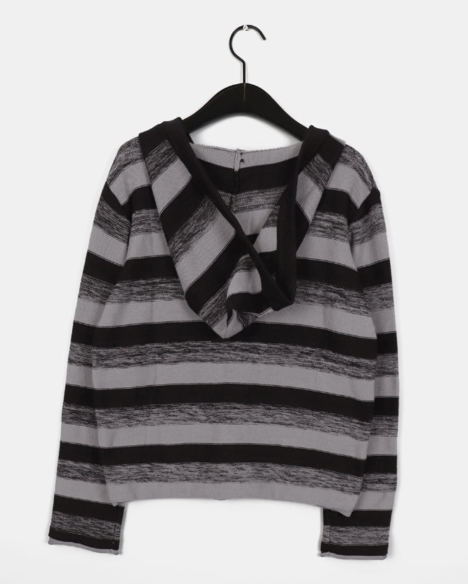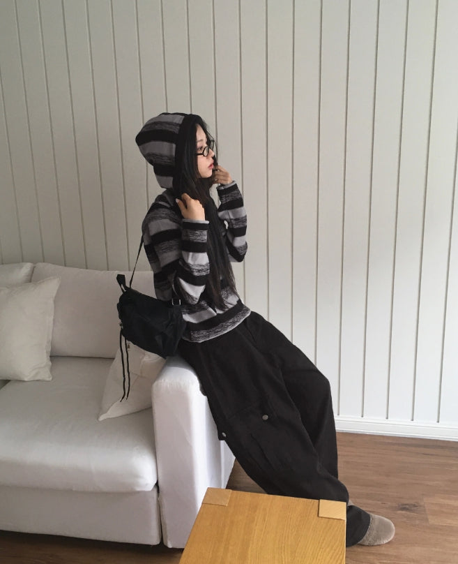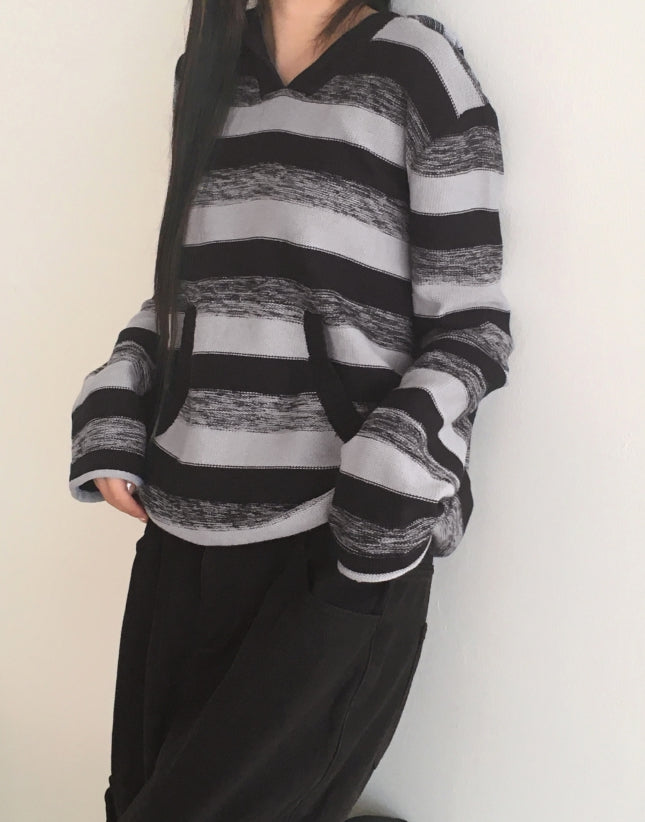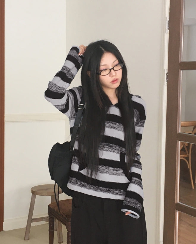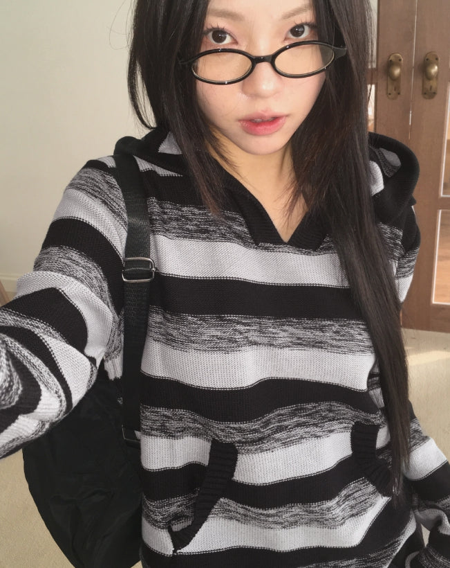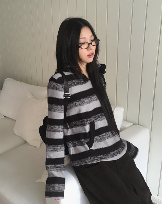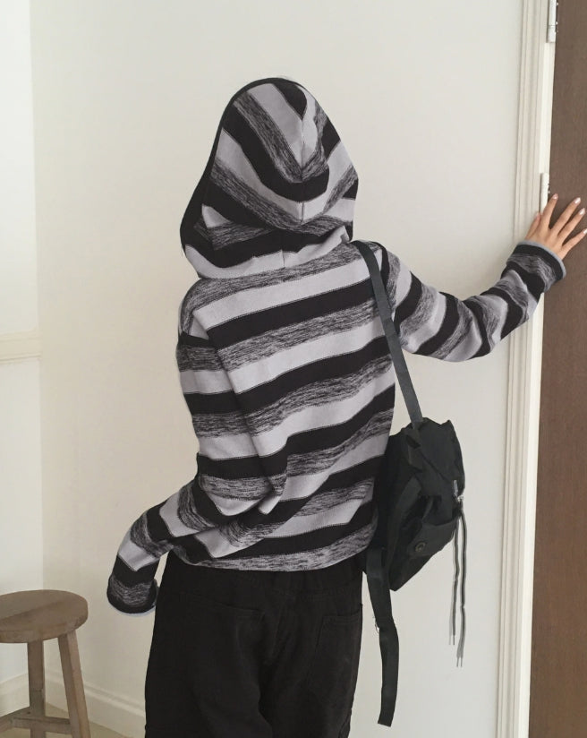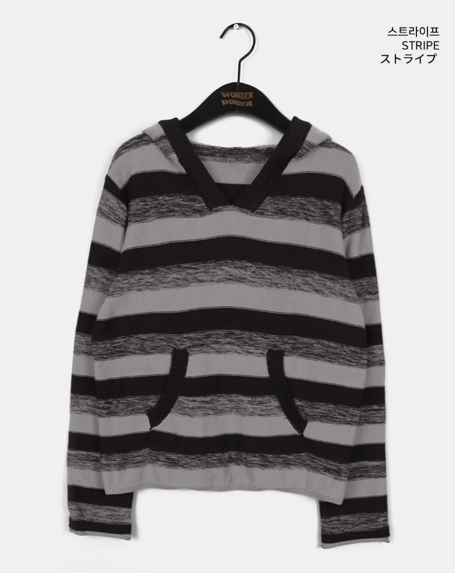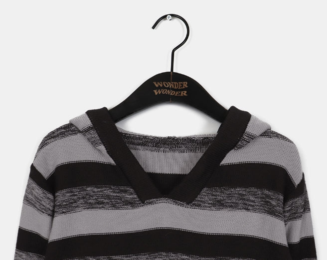 Blon Stripe Color Matching Slim Fit Hood Knit