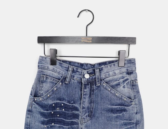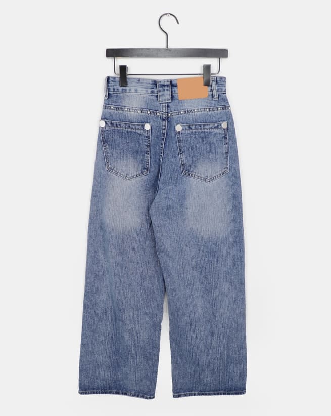 Boa Stud Eyelet Pocket Wide Fit Washed Denim Long Pants