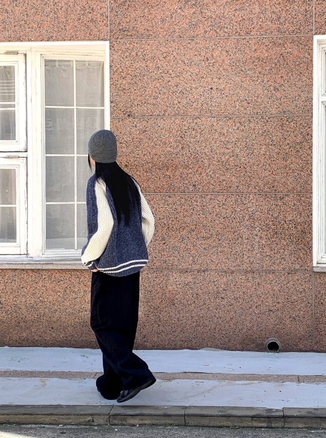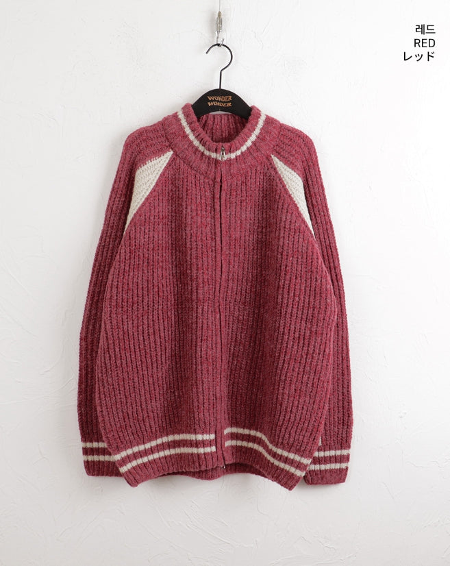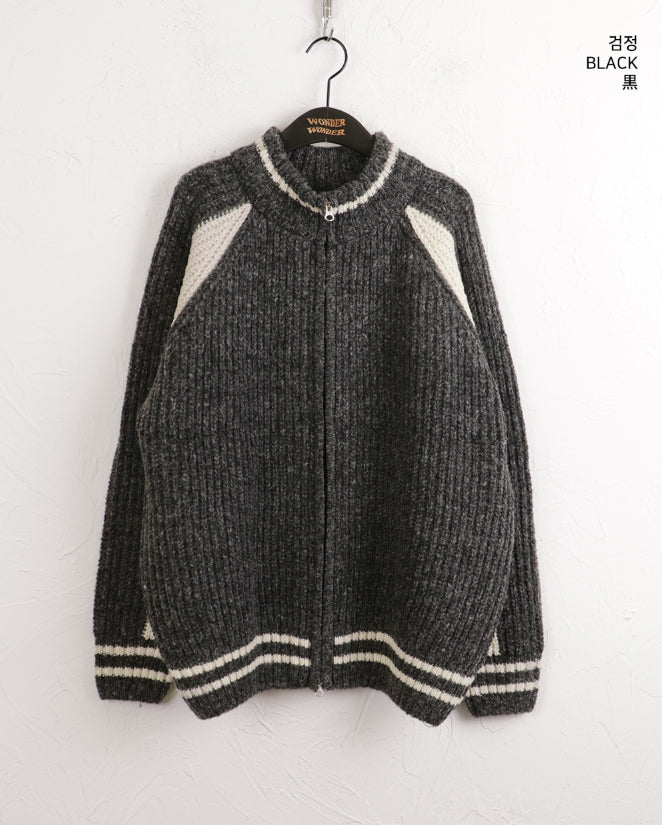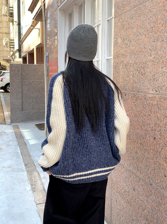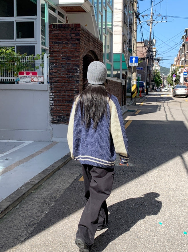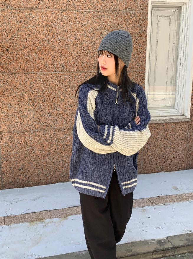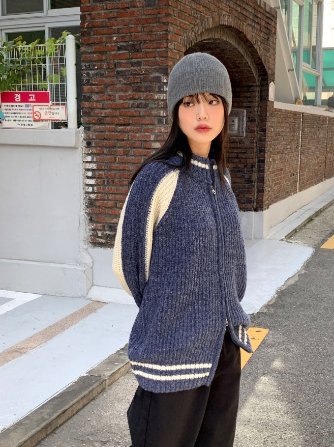 Bollen Varsity Color Matching Boxy Two-Way Knit Zip-Up