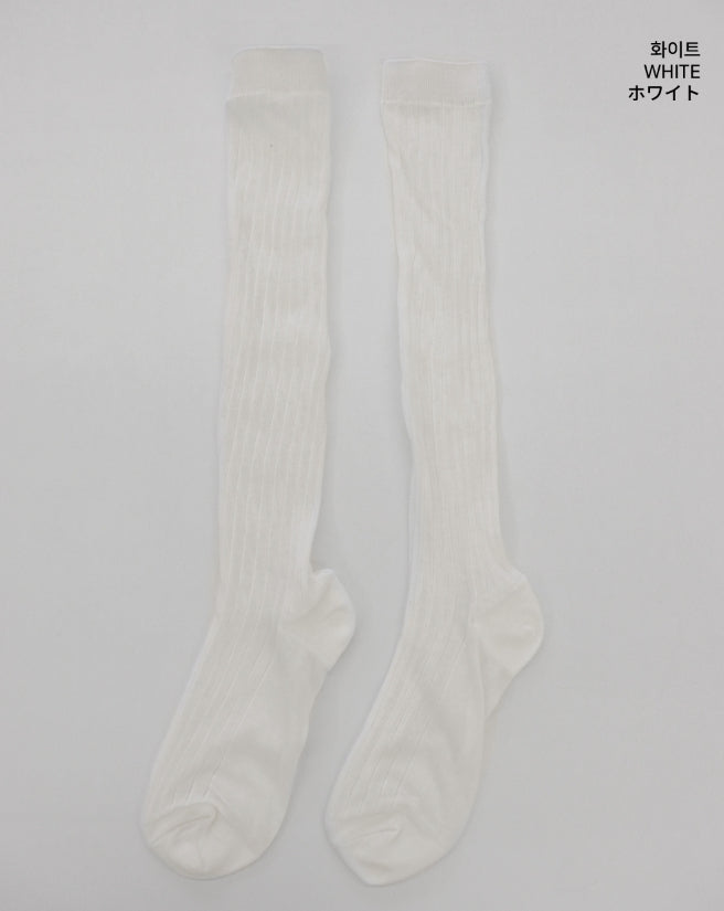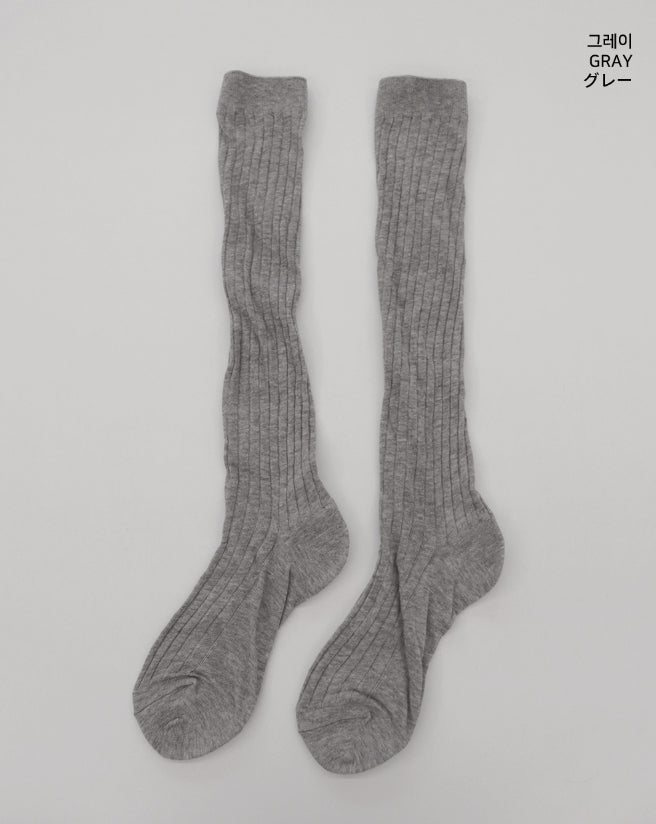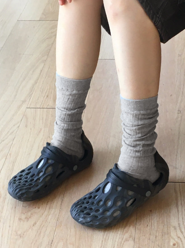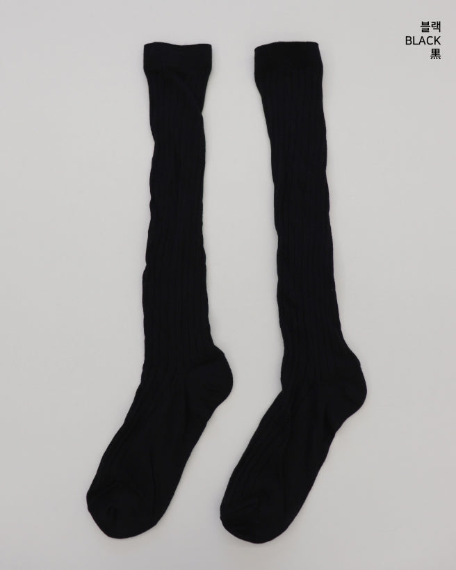 Bonu Ribbed See-Through Knee Socks Shirring Pleated Socks