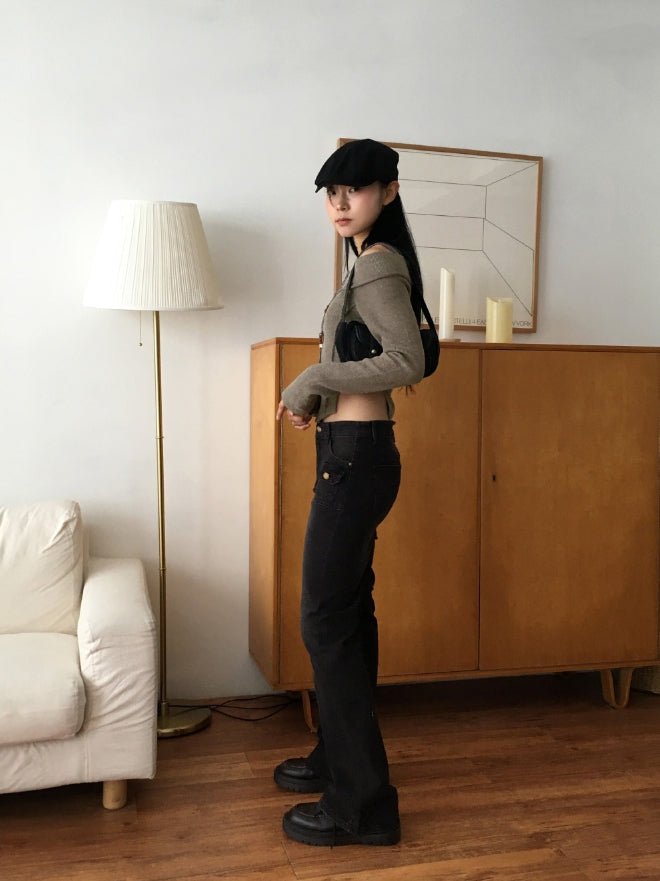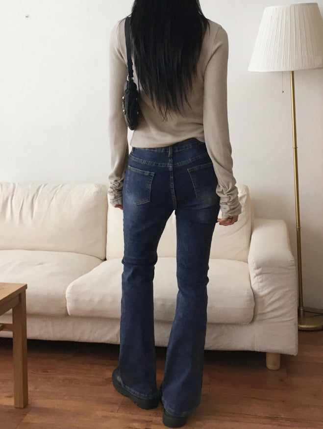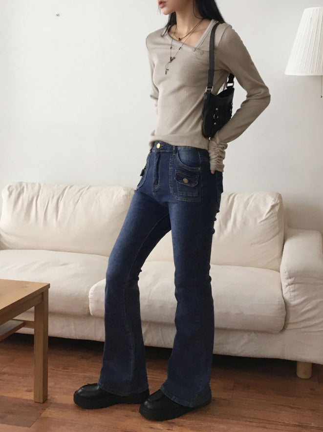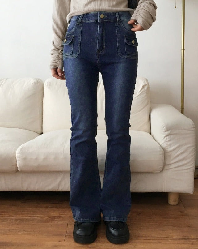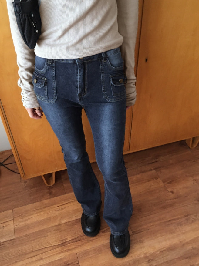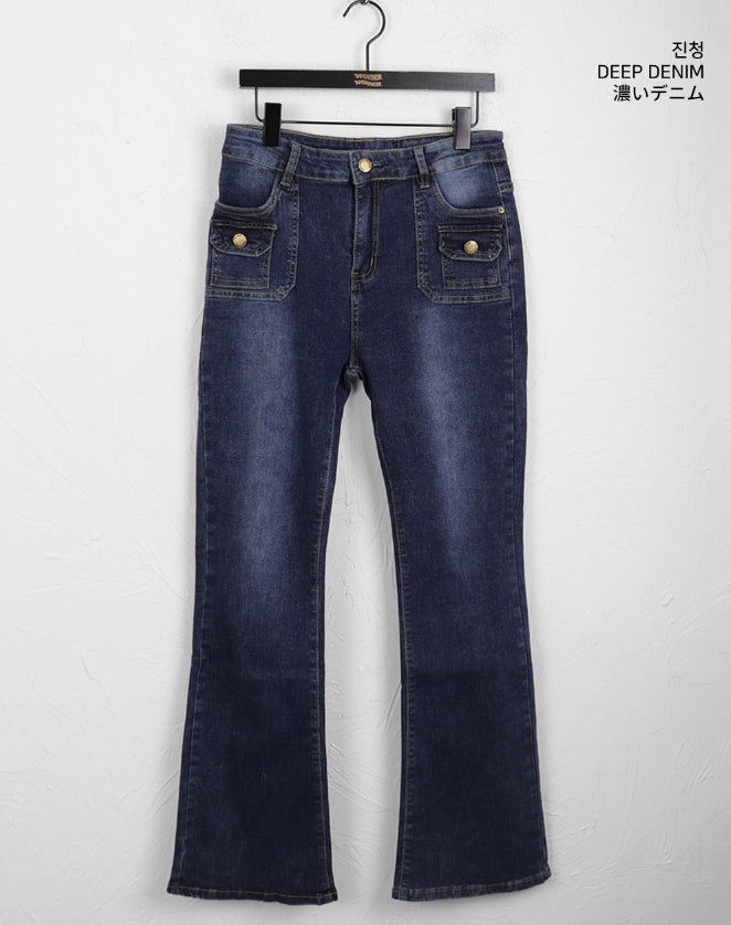 Booming Y2K Pocket Washing Denim Bootcut Pants