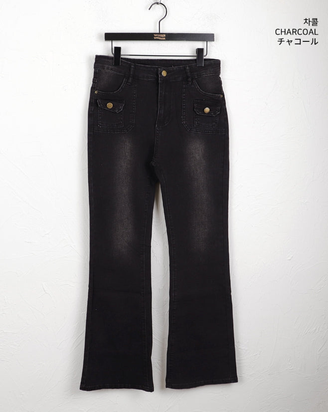ブーミングY2Kポケットウォッシュ加工デニムブーツカットパンツ