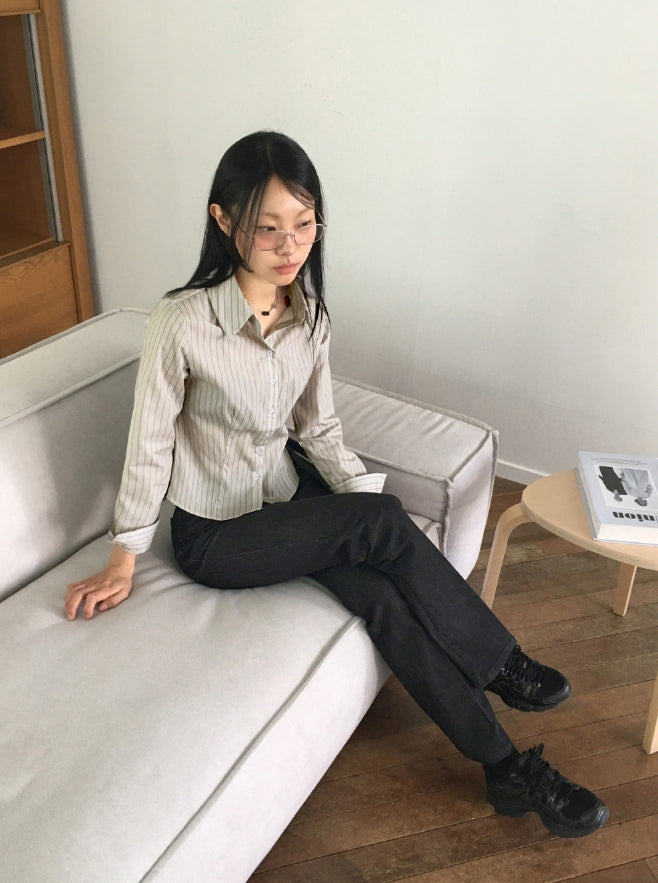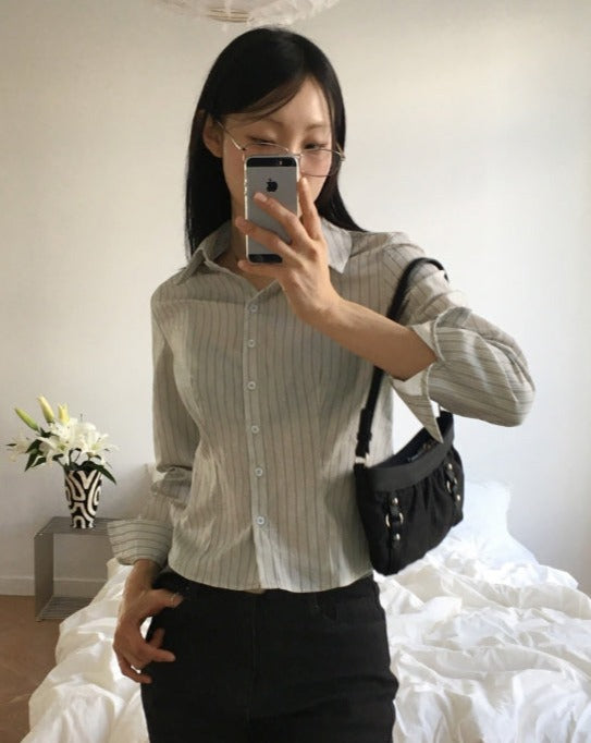 Bounce Stripe Slim Fit Cropped Long Sleeve Shirt