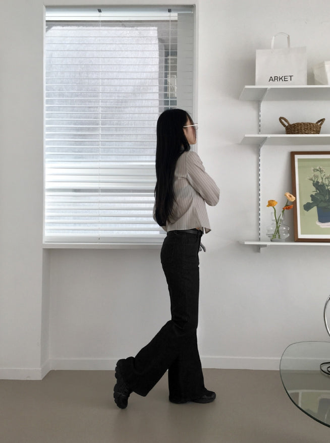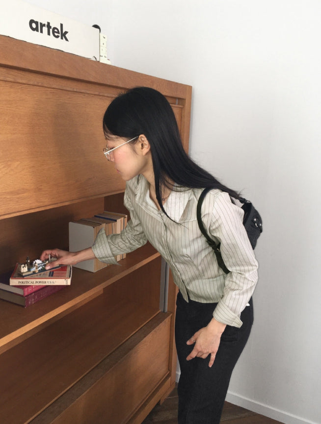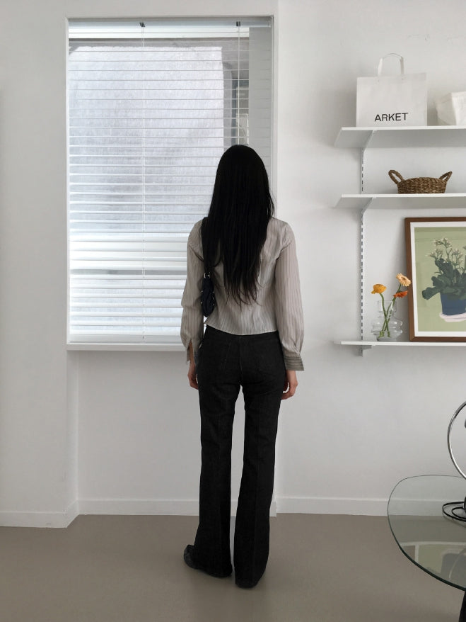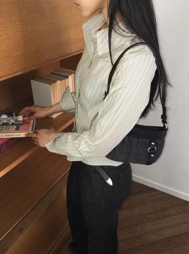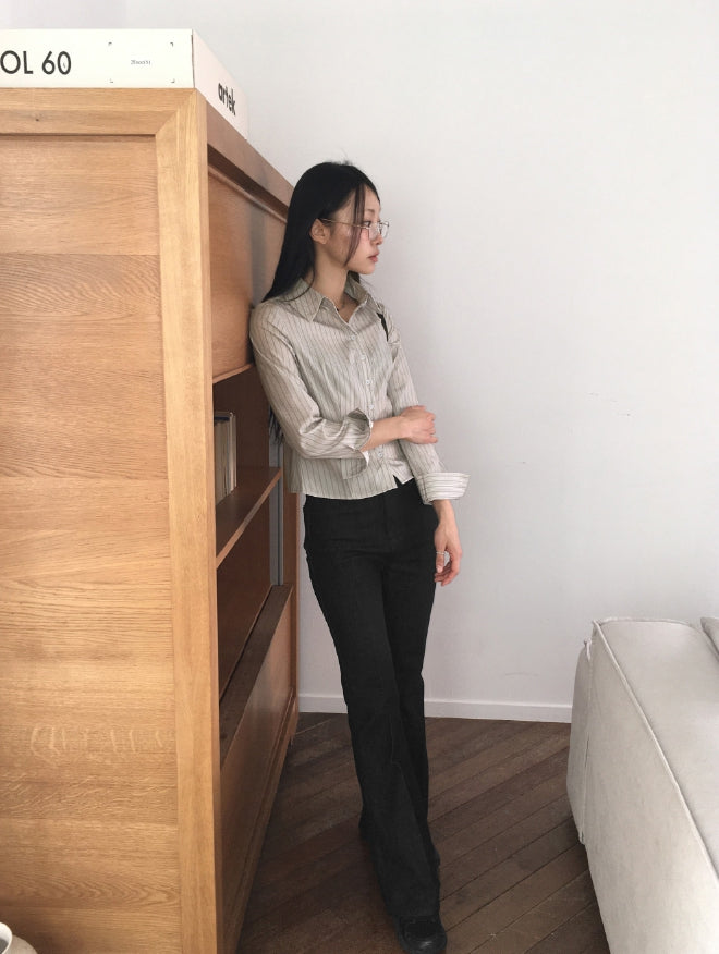 バウンスストライプスリムフィットクロップ長袖シャツ