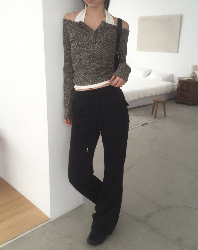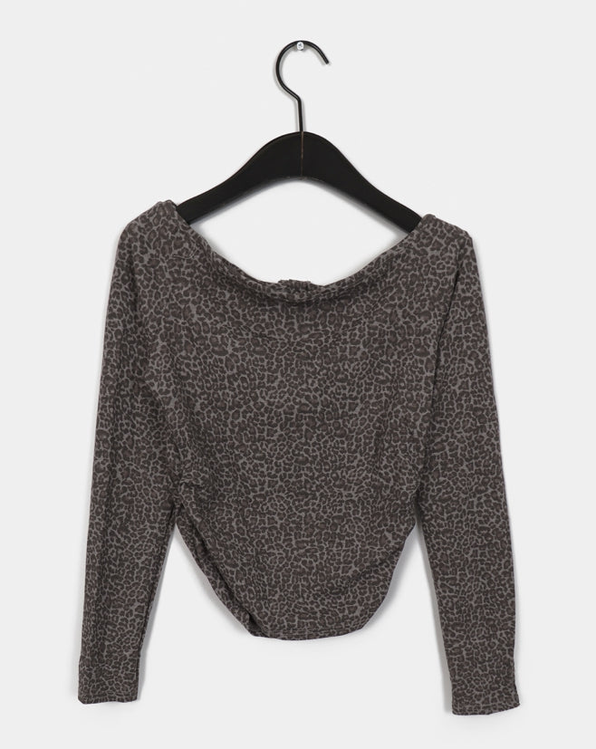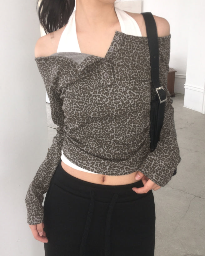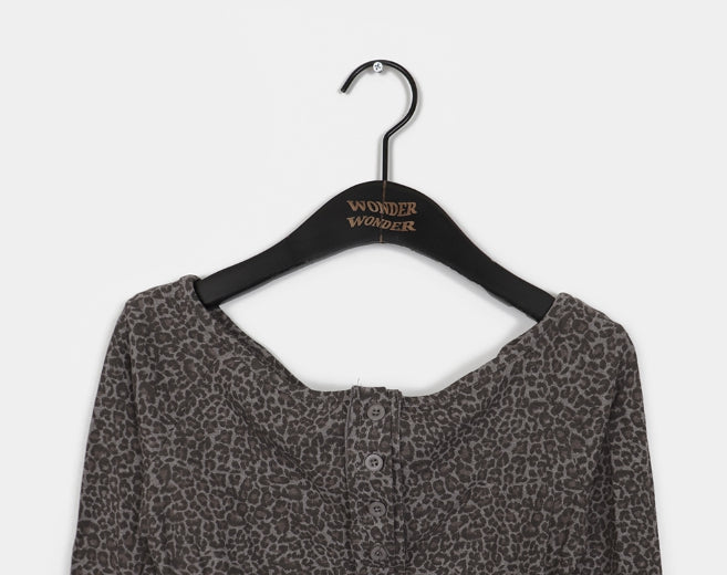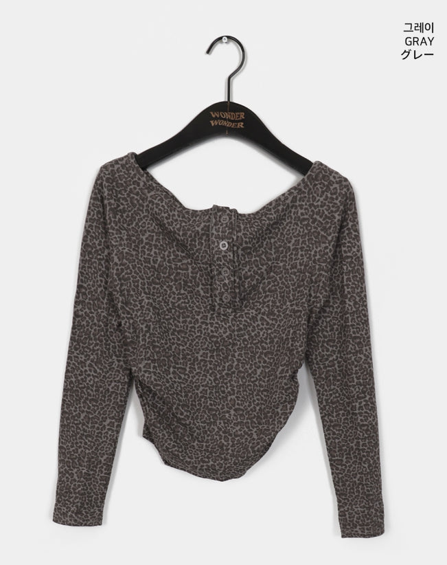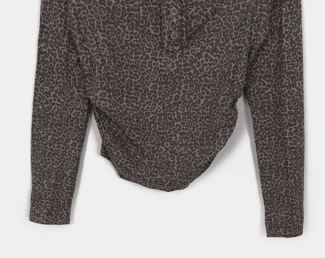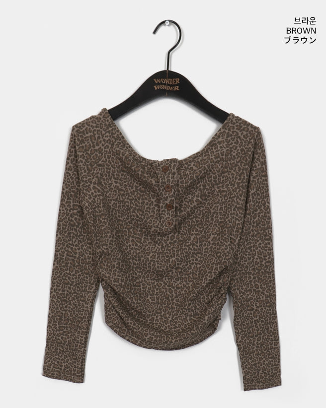 Brick Leopard Hopi Shirring Button T-Shirt