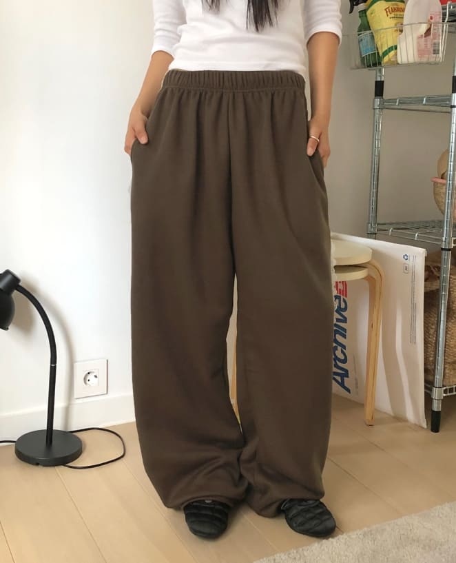 [裏起毛]エディレースバンディングストラップトレーニングワイドロングパンツ
