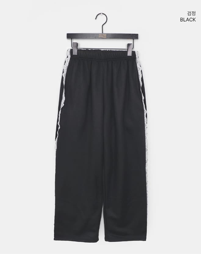 [Brushed] Edie Lace Banding Strap Training Wide Long Pants