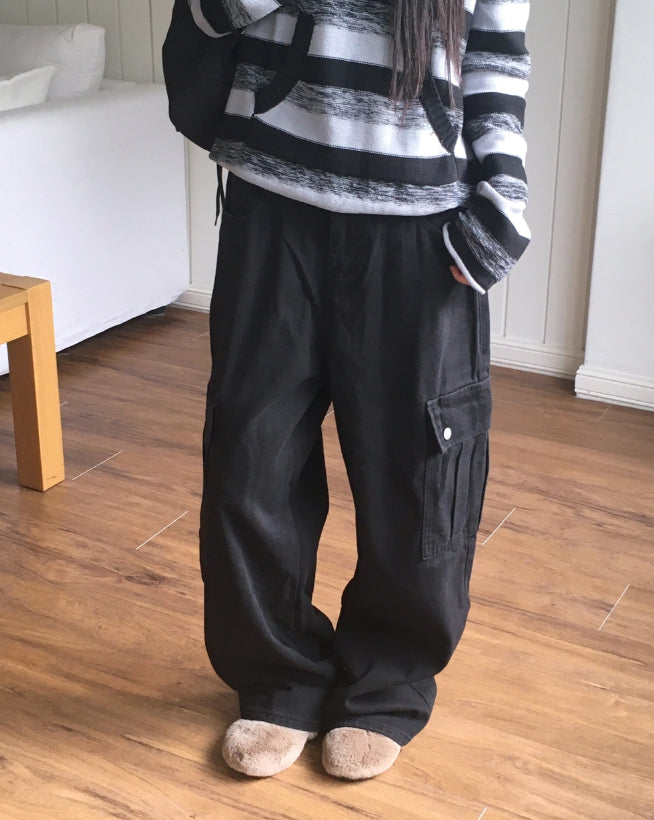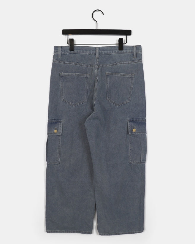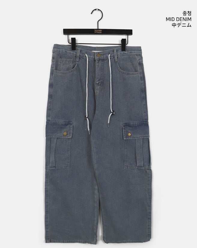 [Brushed Lining] Duco Vintage Cargo Wide Denim Pants