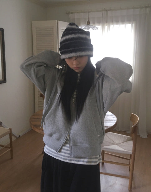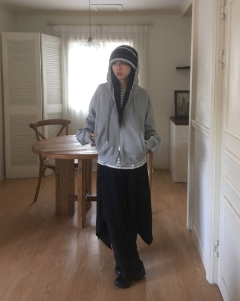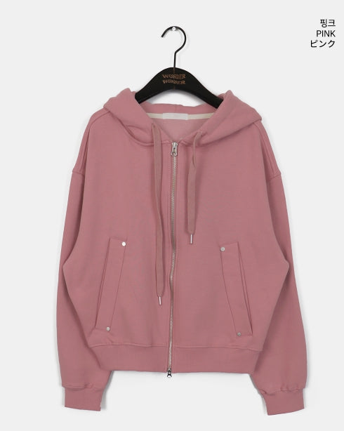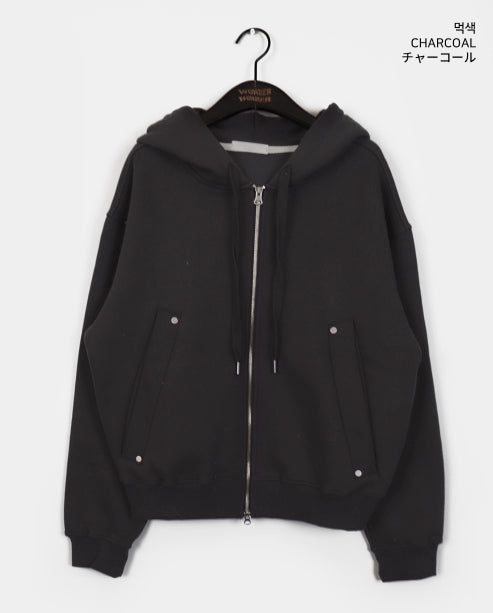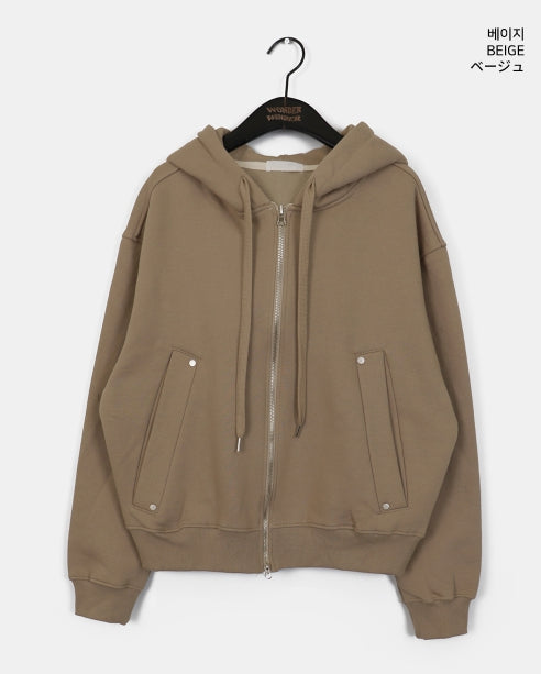 [Fleece Lining] Heating Rivet Pocket Two-Way Hooded Zip-Up