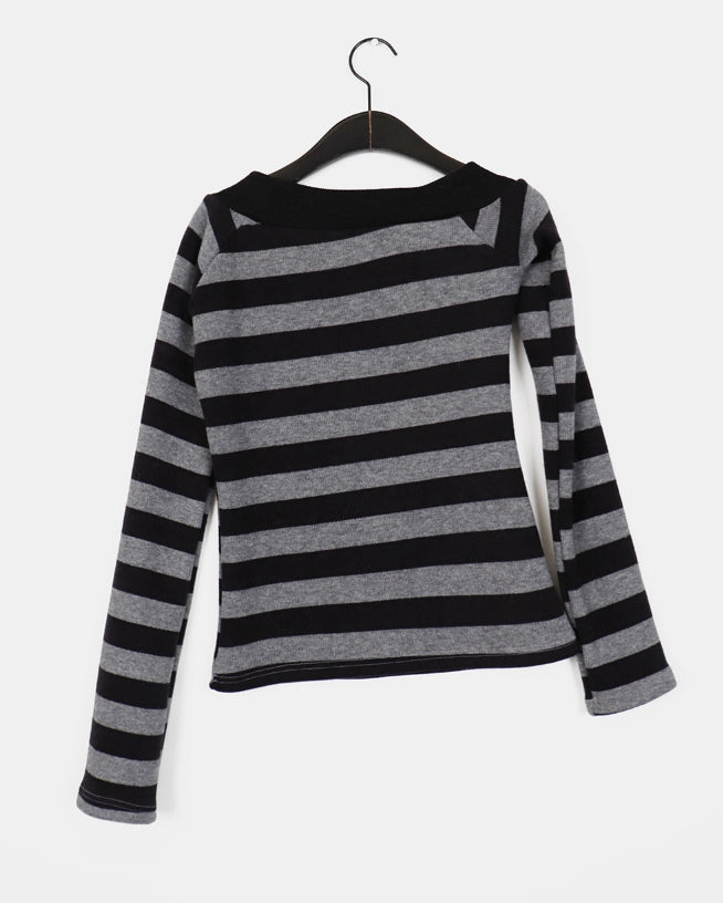 [裏起毛]ノッキンボーダーワンショルダーアンバランスニットTシャツ
