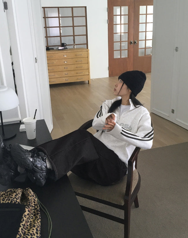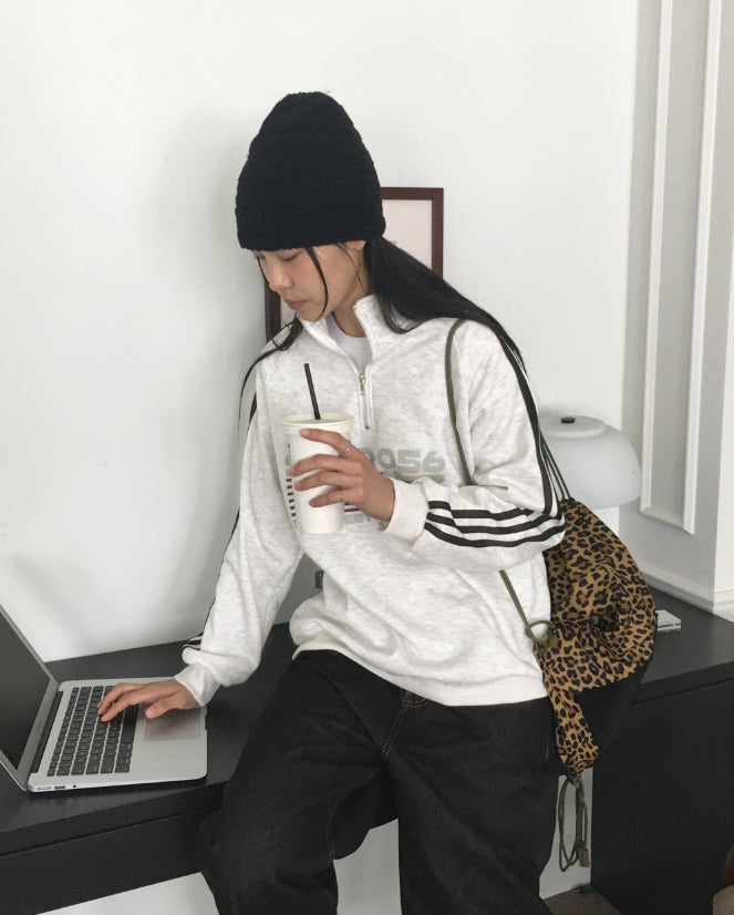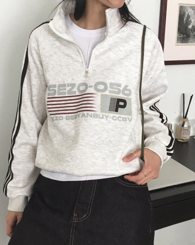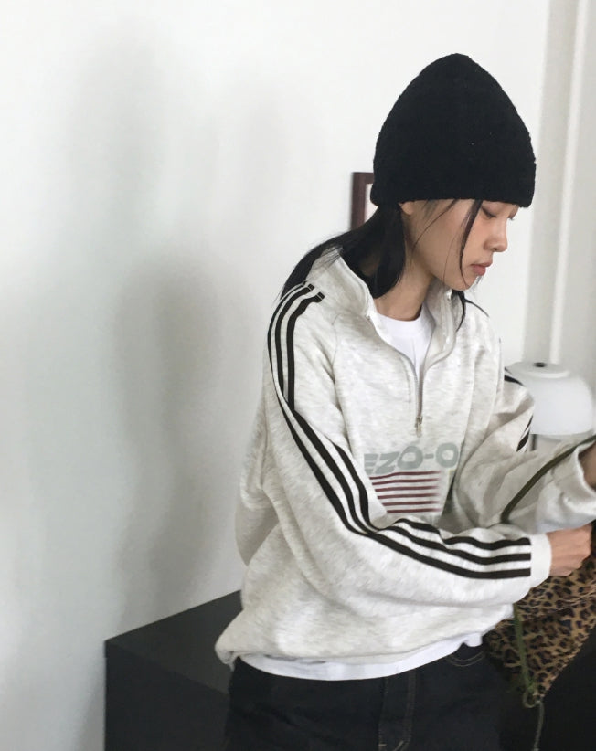 [裏起毛]ティヴァンY2Kトラックオーバーフィットセミジップアップスウェットシャツ