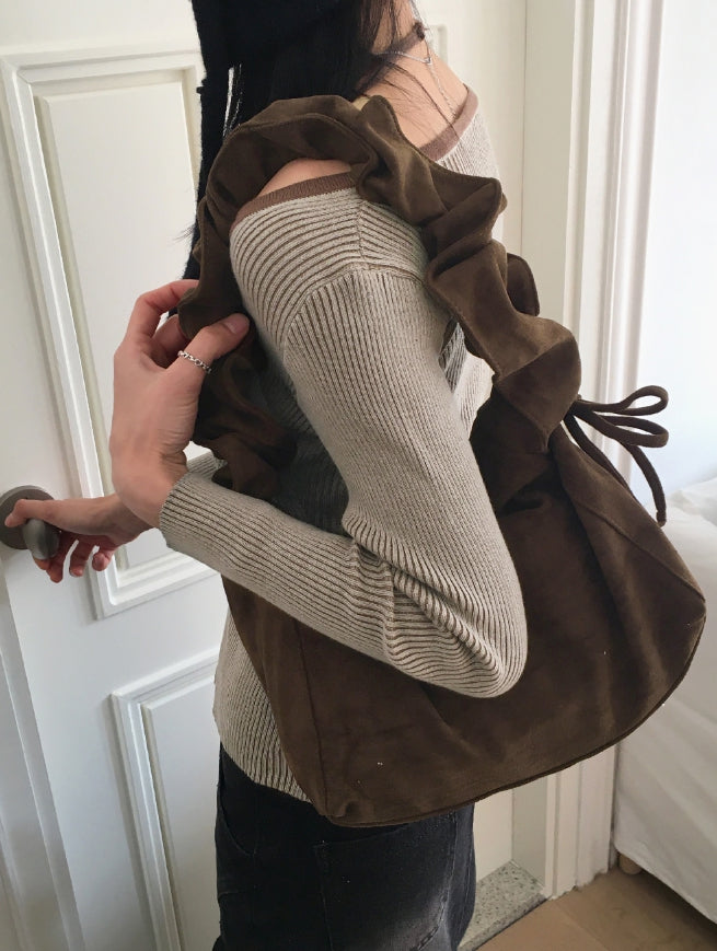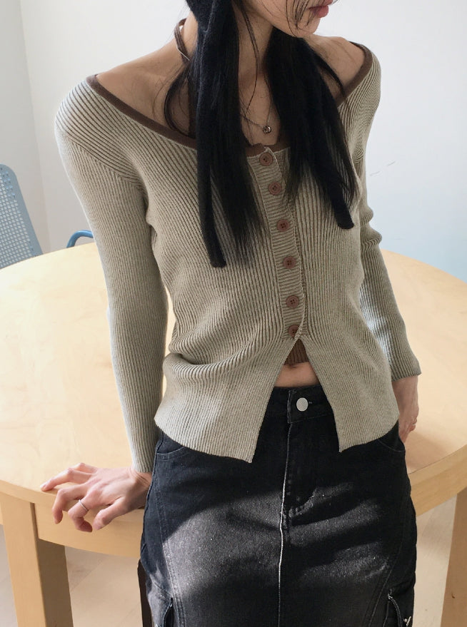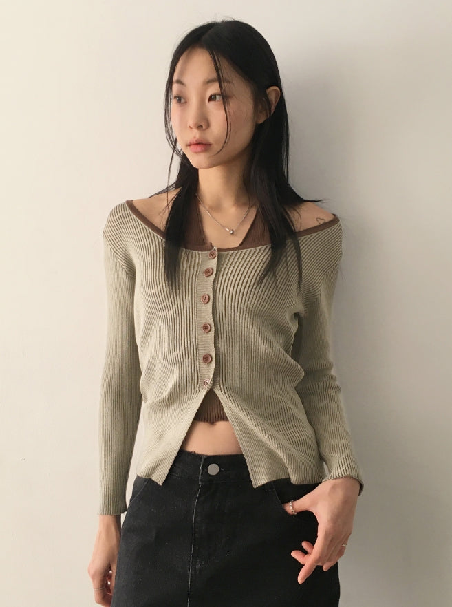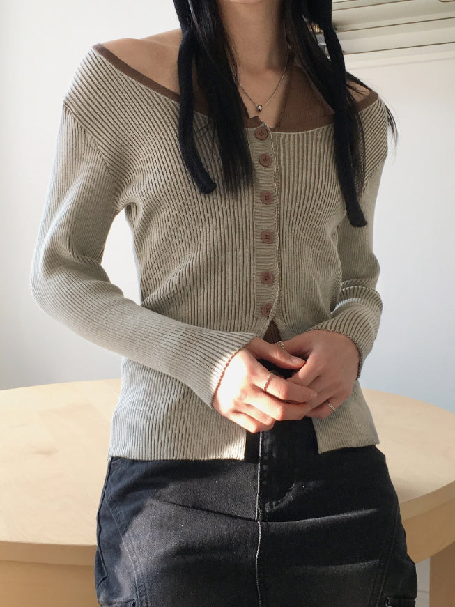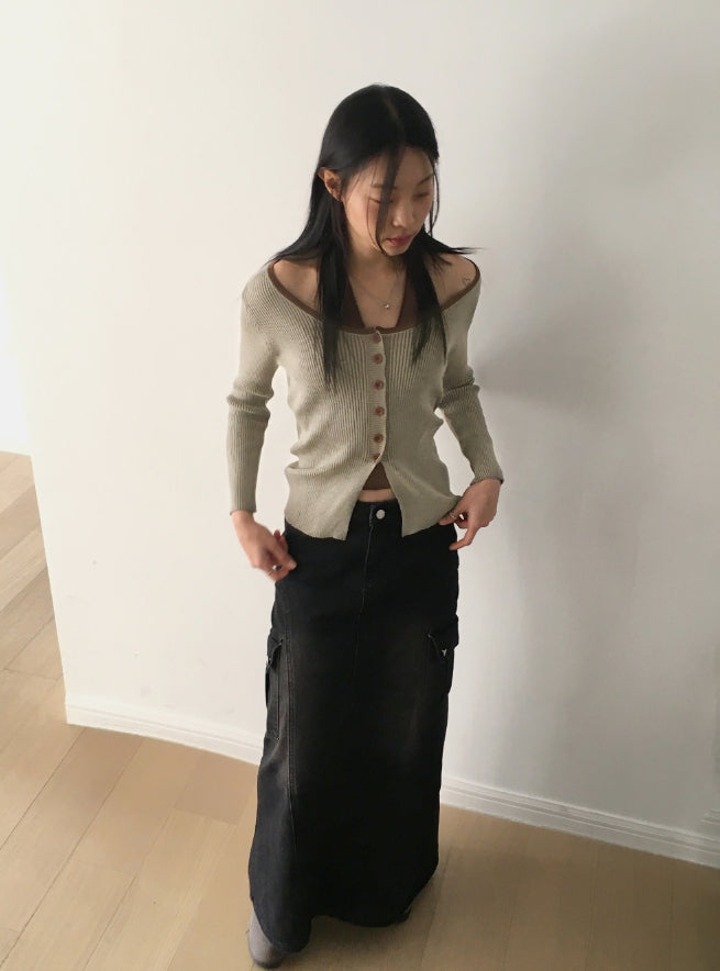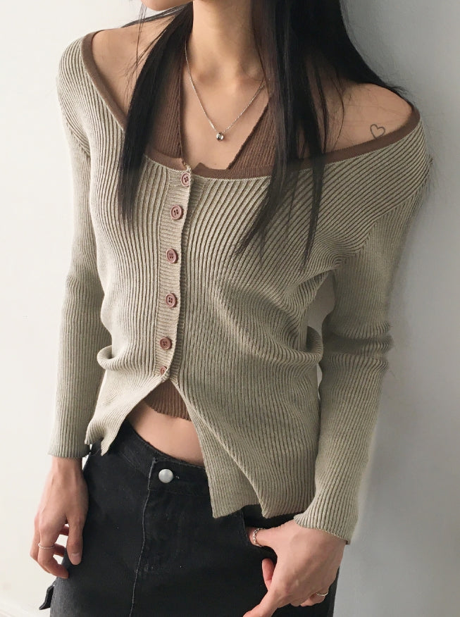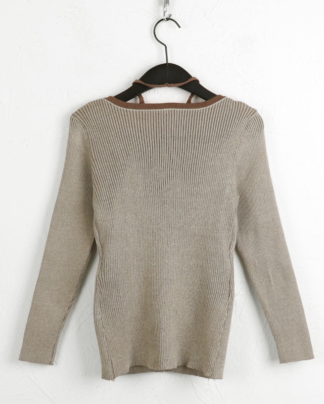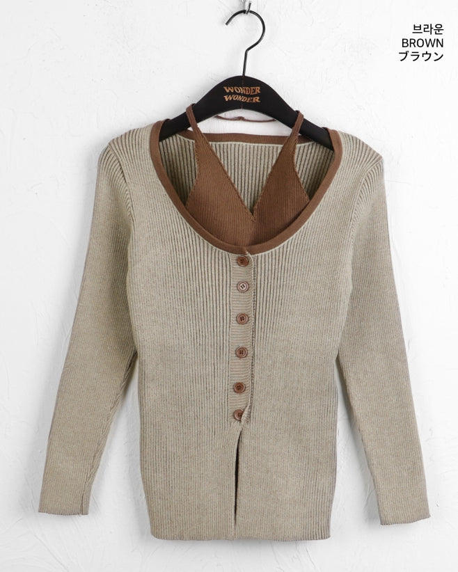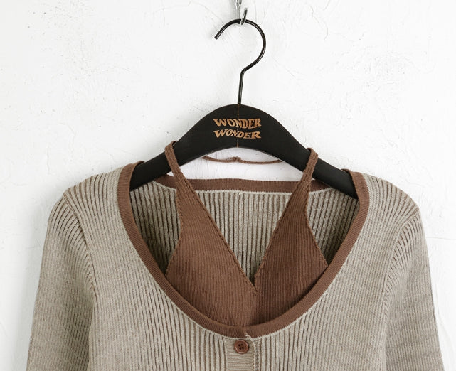 Bua Halterneck Tank Top Ribbed Color Matching Button Long Sleeve T-Shirt