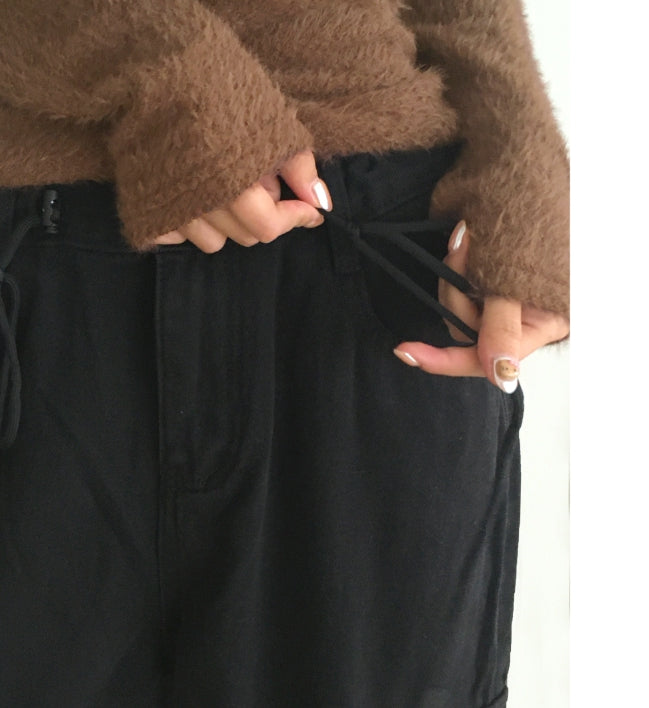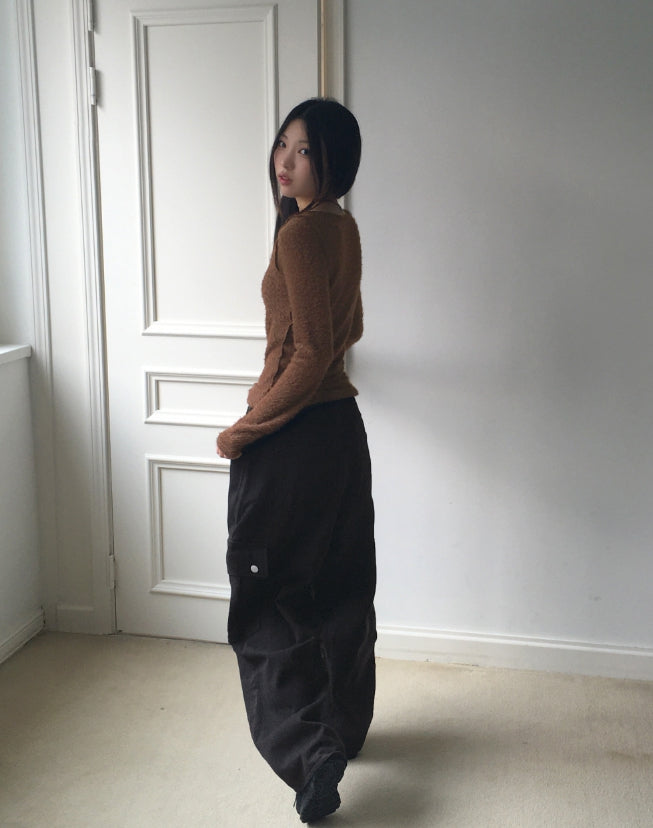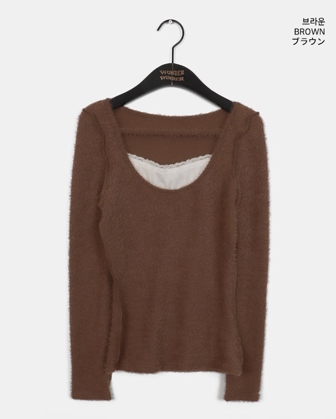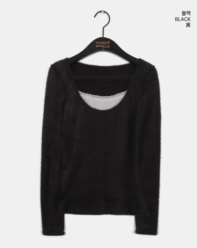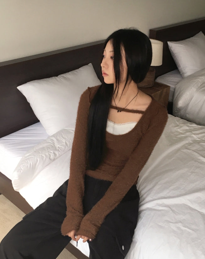 Burku Lace Strap Angora Long Sleeve T-Shirt