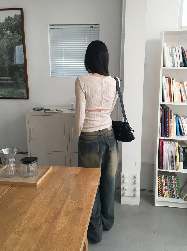Cama Yellow Washing Vintage Long Wide Denim Pants