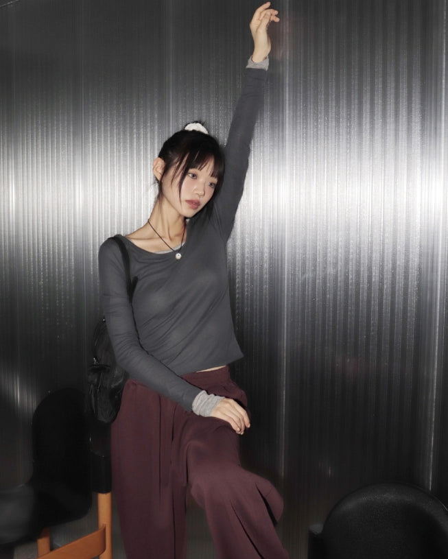 カラットレイヤードシースルーテンセルユーネックTシャツ