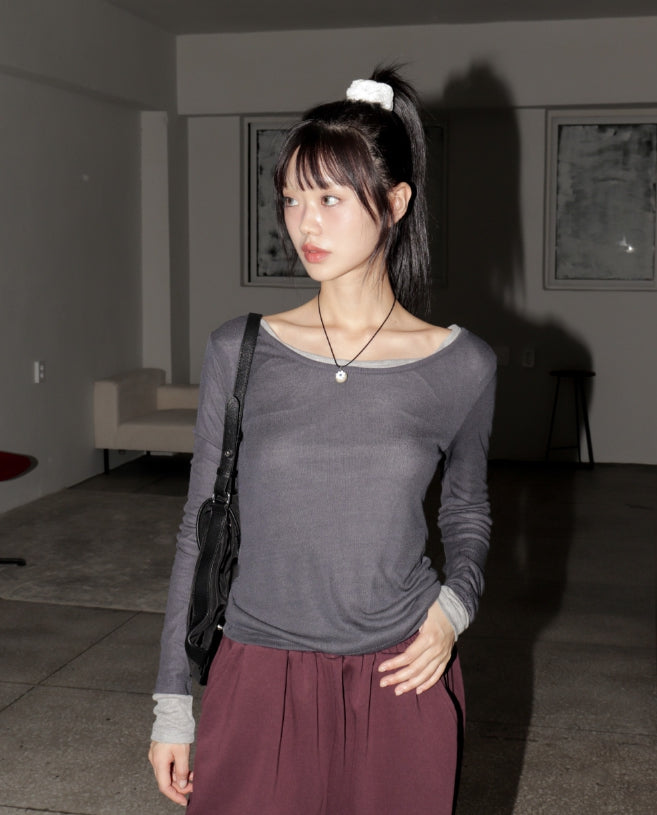 Carat Layered See-Through Tencel U-Neck T-shirt