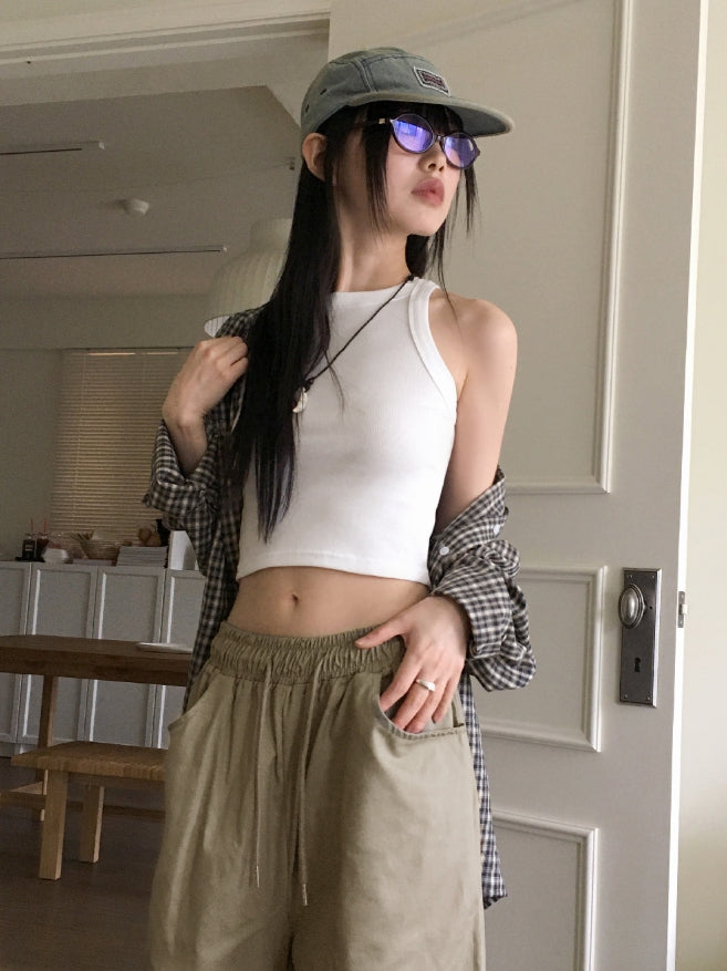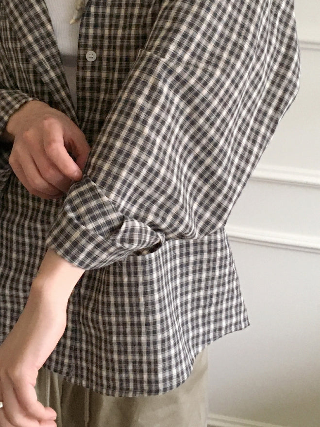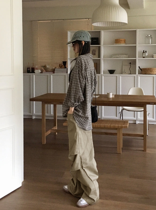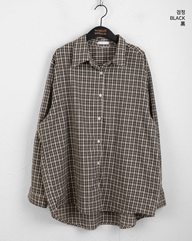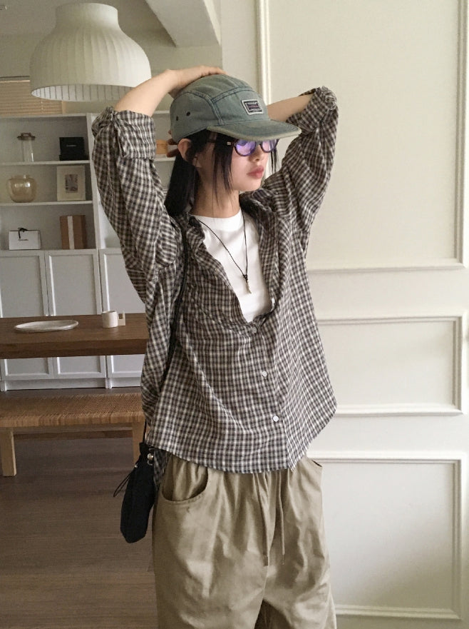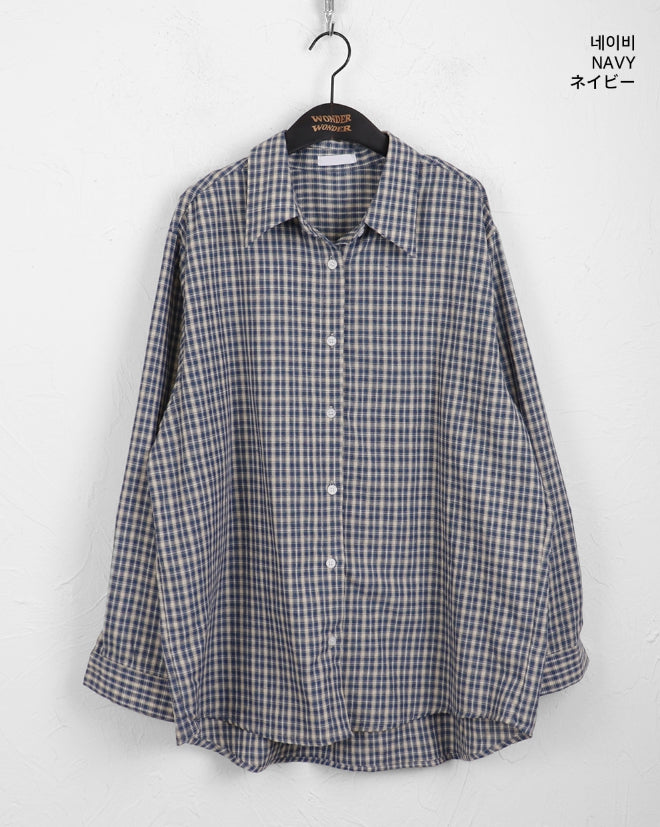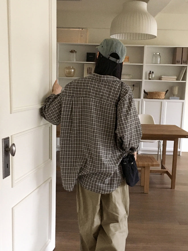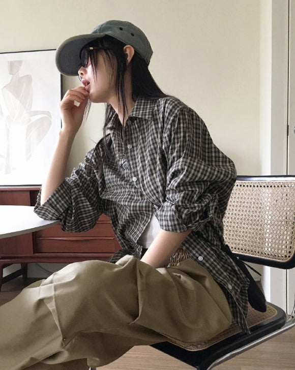 カーデルヴィンテージチェックギークシックオーバーフィット長袖シャツ