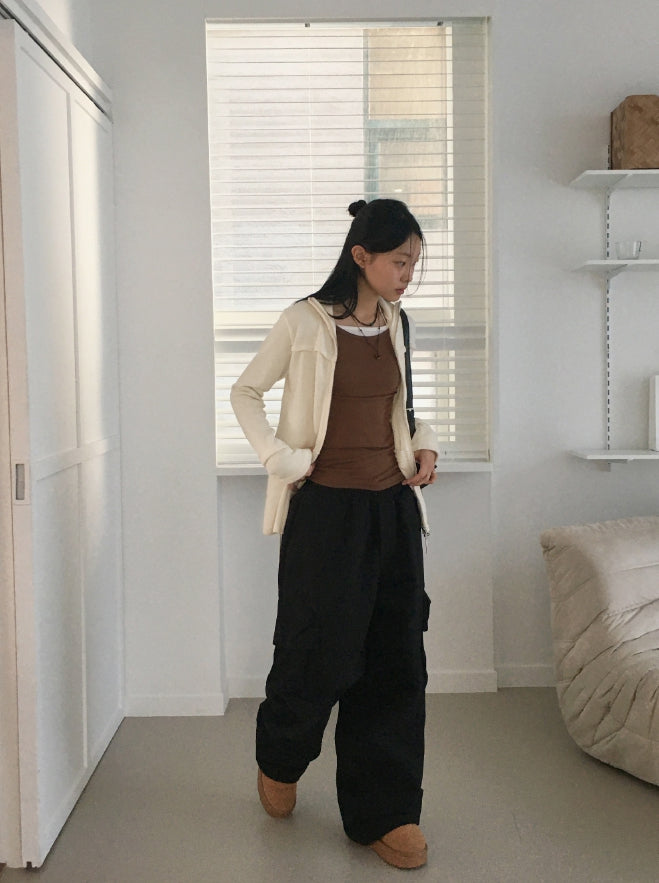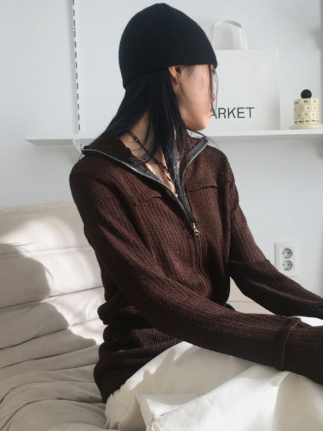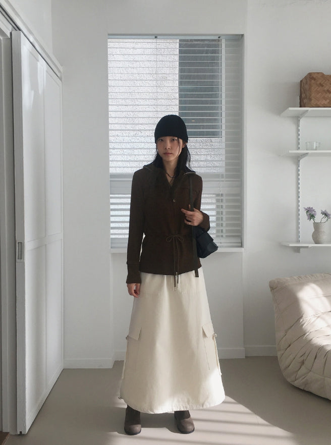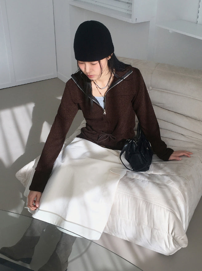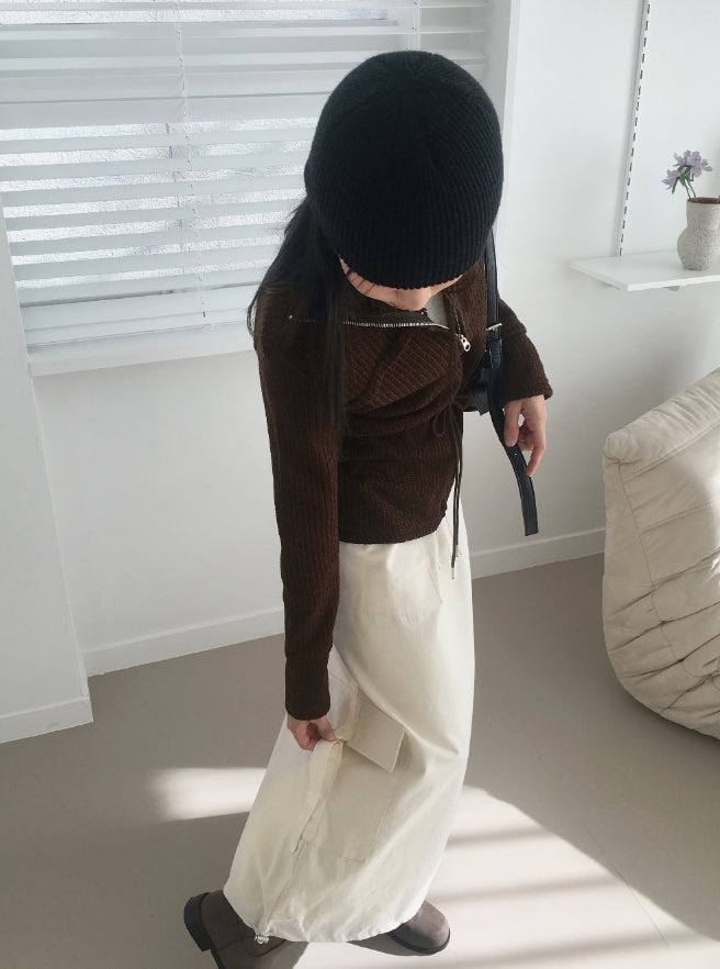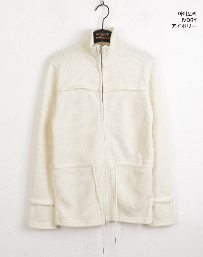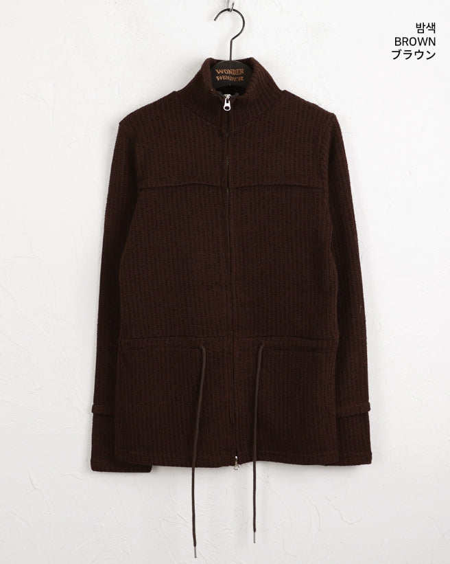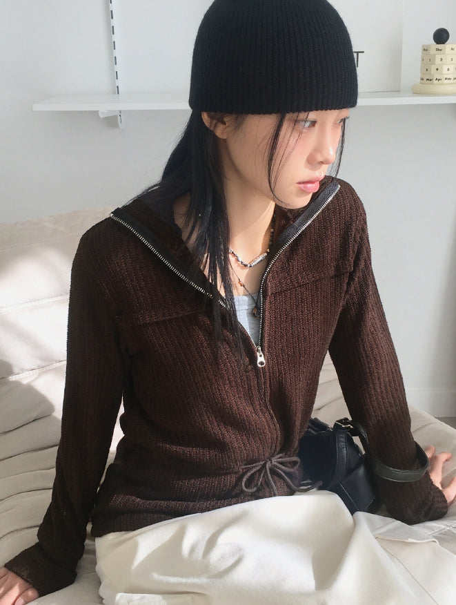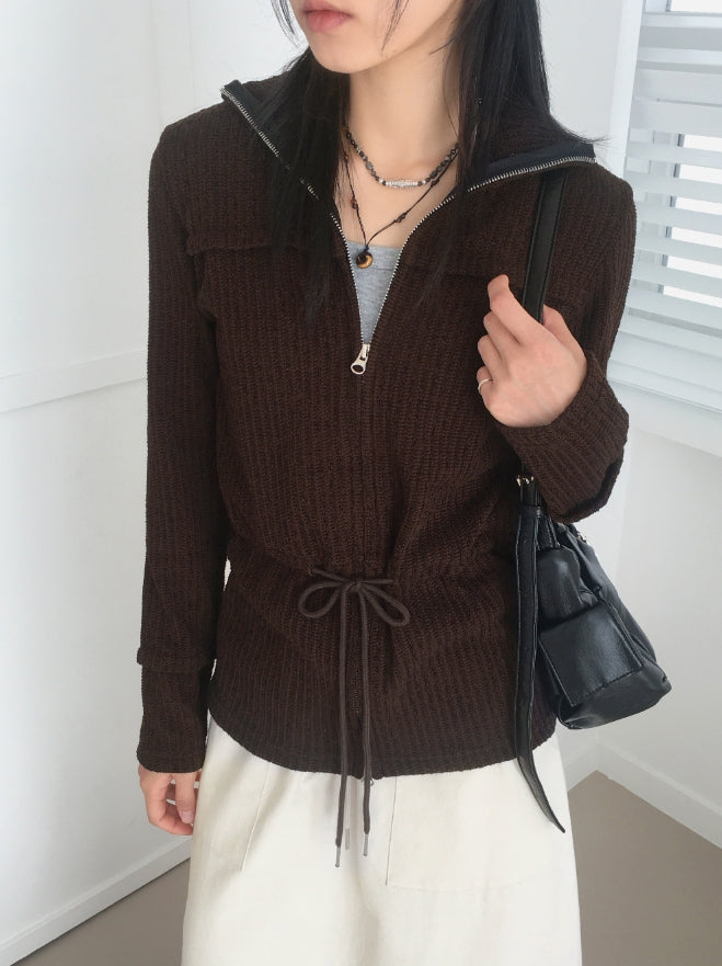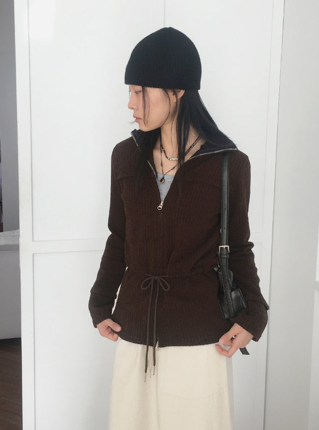 Celtic Rivbbed String Two-Way Knit Zip-Up Cardigan