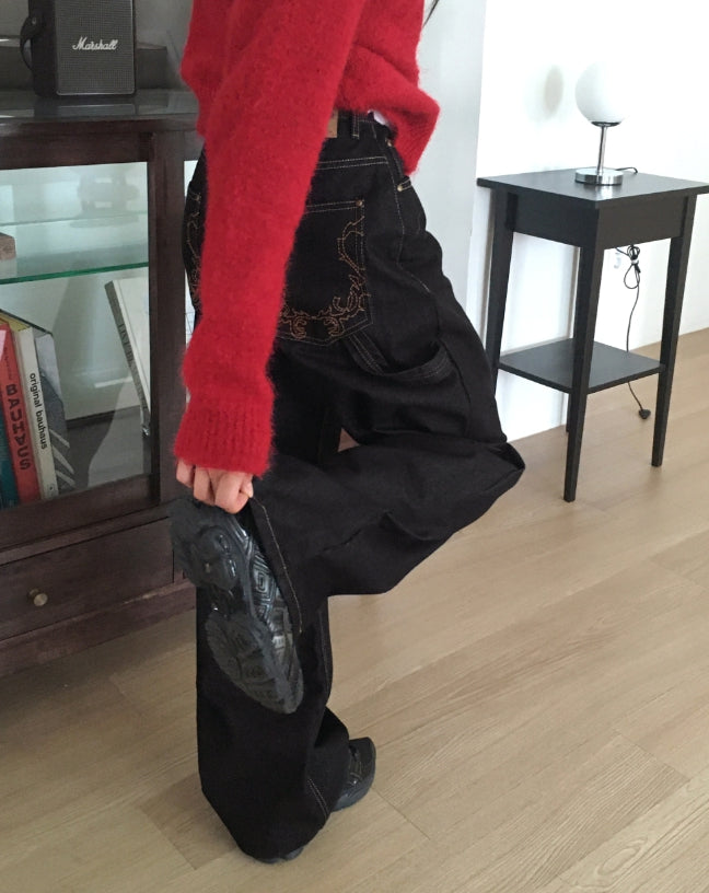 Chant Twist Embroidered Carpenter Raw Denim Pants
